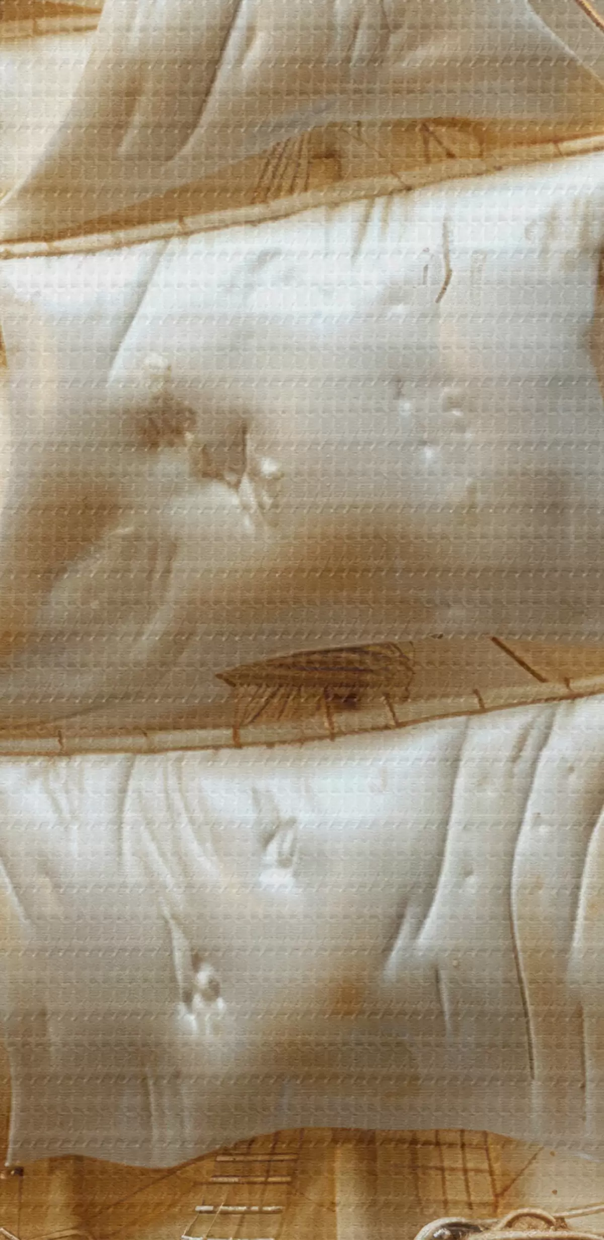 Um die Leinwand auf Keilrahmen zu spannen, ohne das Bild zu beschädigen, verwenden wir ein gespiegeltes Bild.