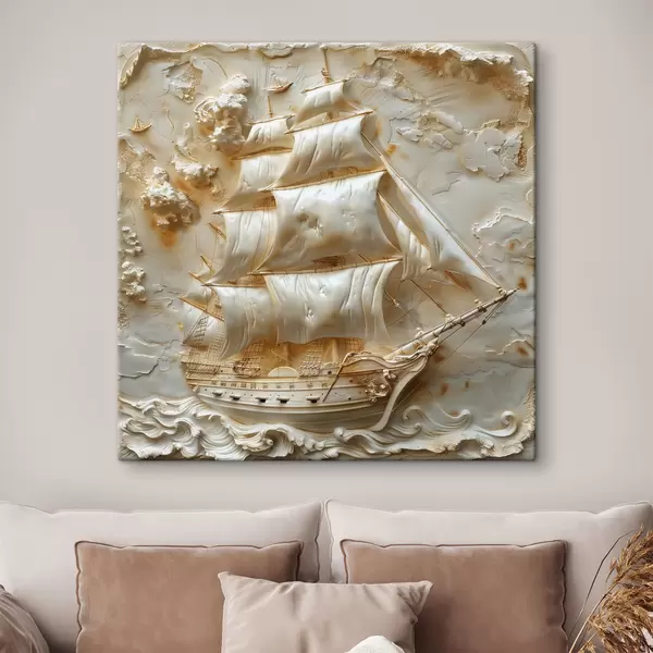 Wandbilder Flachrelief eines Schiffes, das auf dem Meer segelt Art. s39757