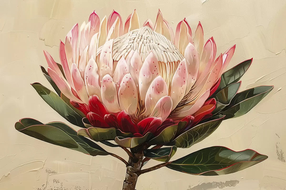 Wandbilder Protea-Blume, Acrylzeichnung, floral, sanfte Naturfarben s39780
