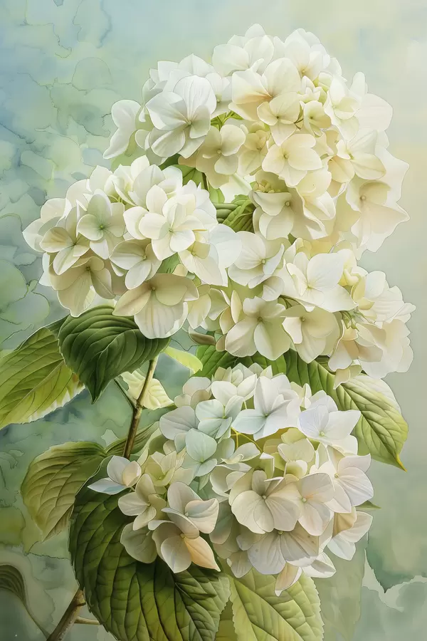 Wandbilder Hortensienblüte, Blumen, sanfte Naturfarben, Aquarellzeichnung Art. s39782