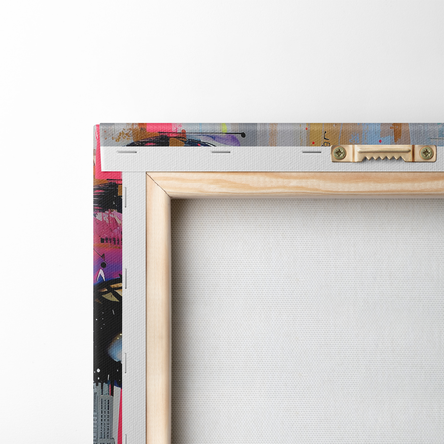 Um die Leinwand auf Keilrahmen zu spannen, ohne das Bild zu beschädigen, verwenden wir ein gespiegeltes Bild.