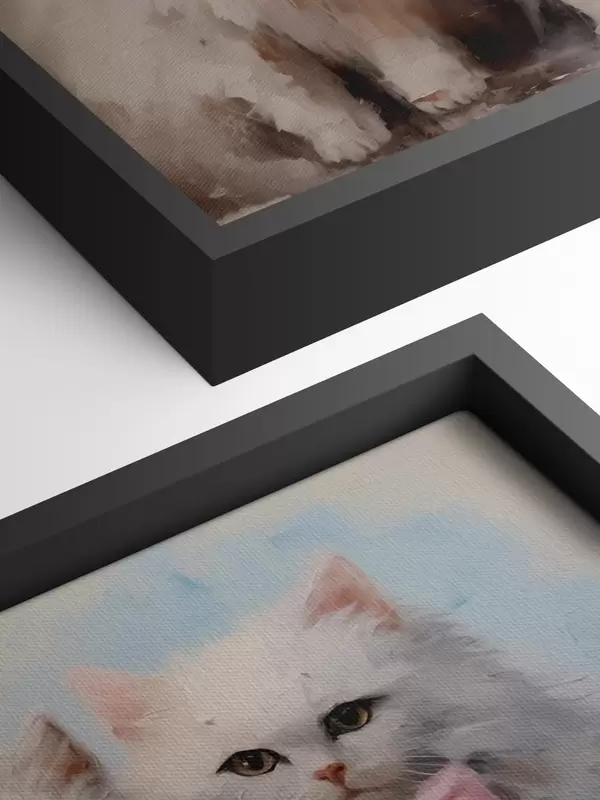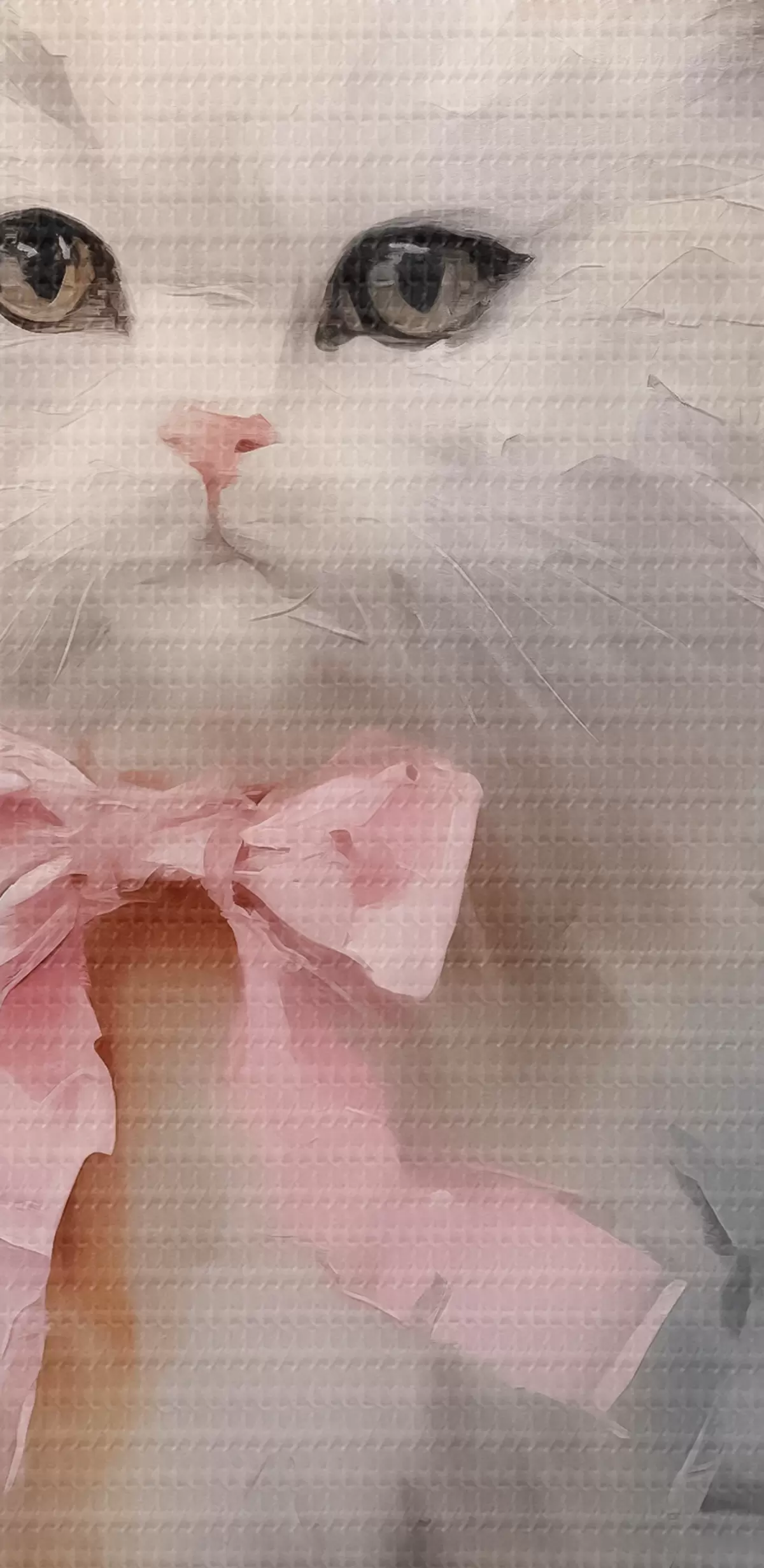 Wandbilder Weiße Katzen mit rosa Schleifen Ölgemälde Art. s39826