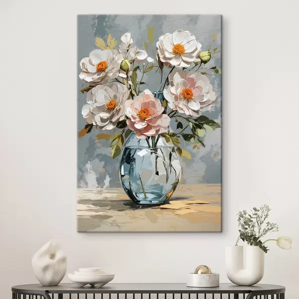 Wandbilder Weiße Blumen in transparenter Vase Art. s39850