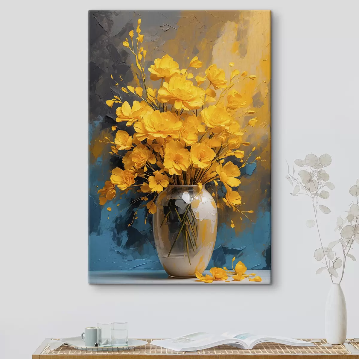 Wandbilder Gelbe Blumen in der Vase auf buntem Acryl-Hintergrund Art. s39854