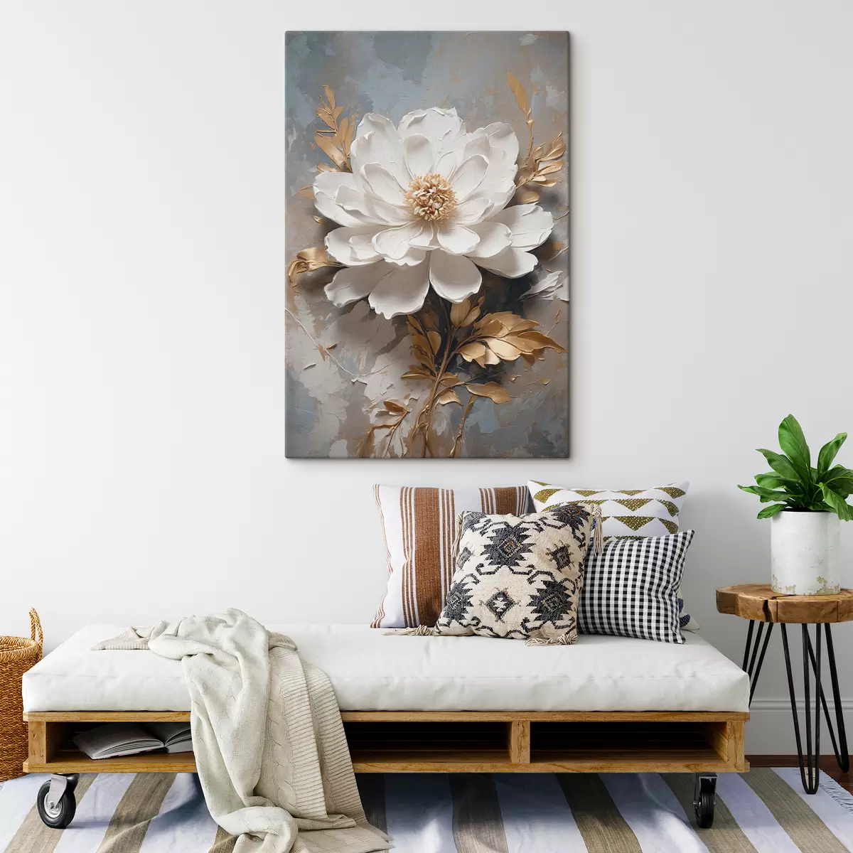 Drei Materialtypen stehen zur Verfügung: Economic Canvas - ein dichtes und haltbares Material für den Digitaldruck, identisch mit Malerleinwand, wasserfeste Oberfläche, realistische Wiedergabe von Details, mittelkörniges Material. Premium Canvas - die Textur ähnelt der einer Malerleinwand (verwobene kleine Fäden). Weiche, detaillierte Wiedergabe des Bildes auf einer matten Oberfläche. Eco-Premium - hochwertiges Gewebe aus 100% Baumwolle. Dank der natürlichen Baumwollfasern ist das Material langlebig und verschleißfest. Hervorragende Farbwiedergabe und Detailtreue.
