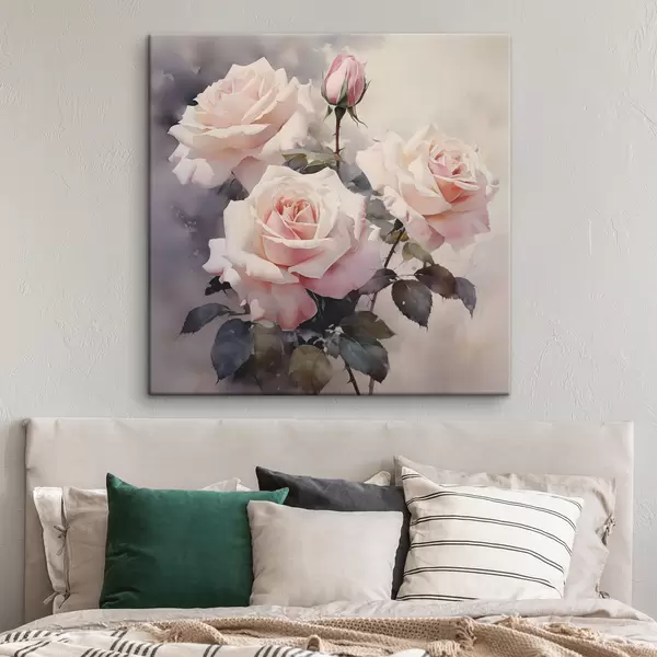 Wandbilder Weiße rosa Rosen auf dunklem Hintergrund Aquarell Art. s39927
