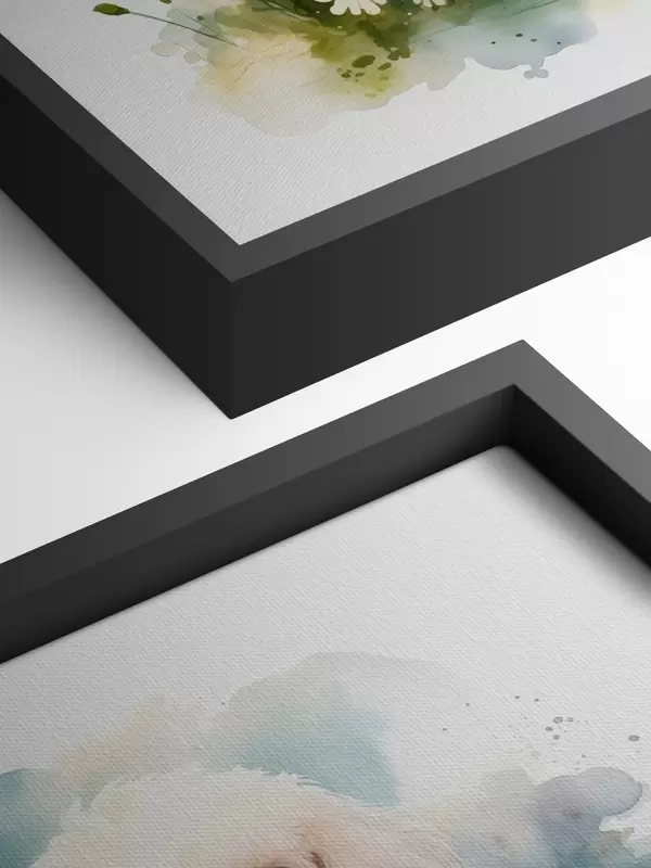 Wandbilder Kleiner weißer Pudel sitzt im Blumenaquarell s39928