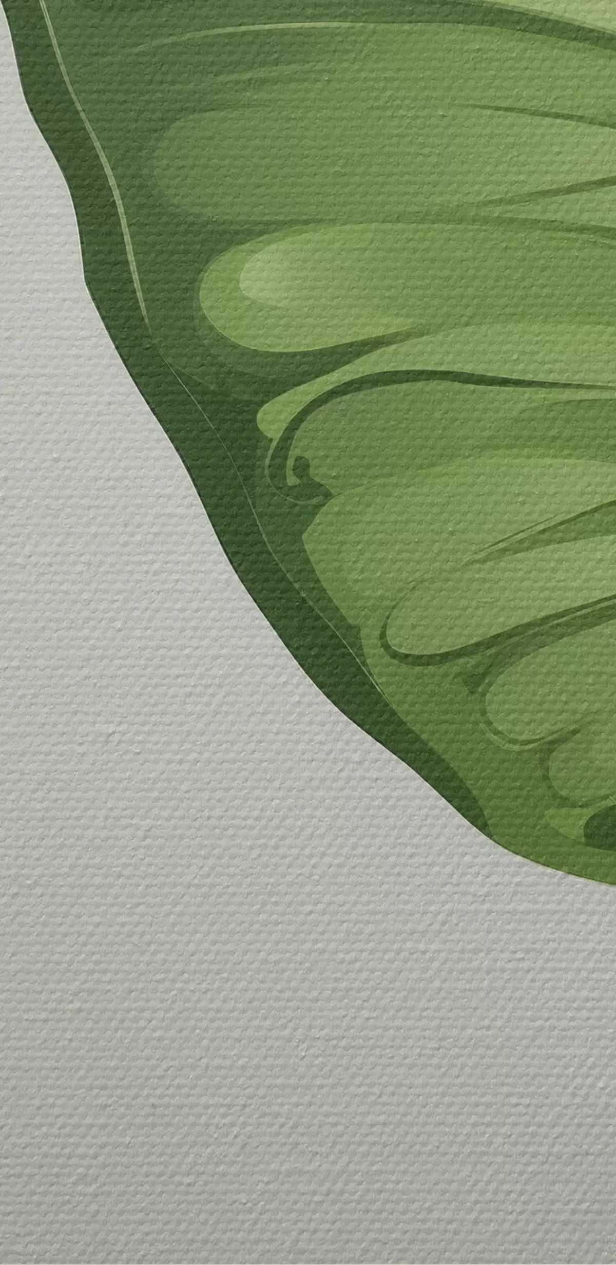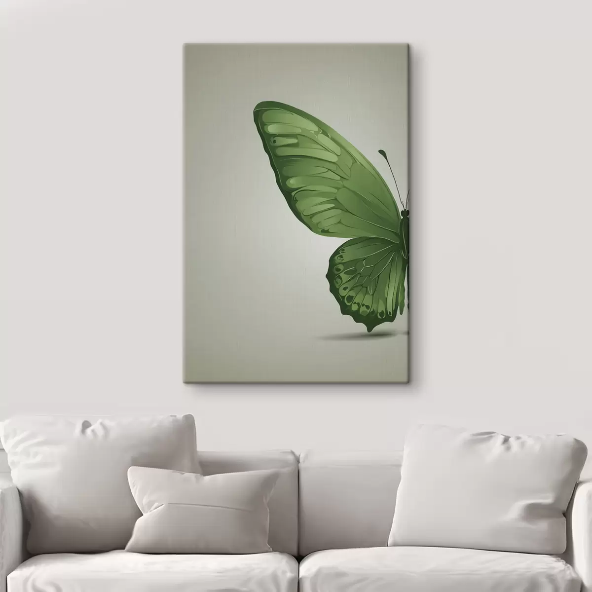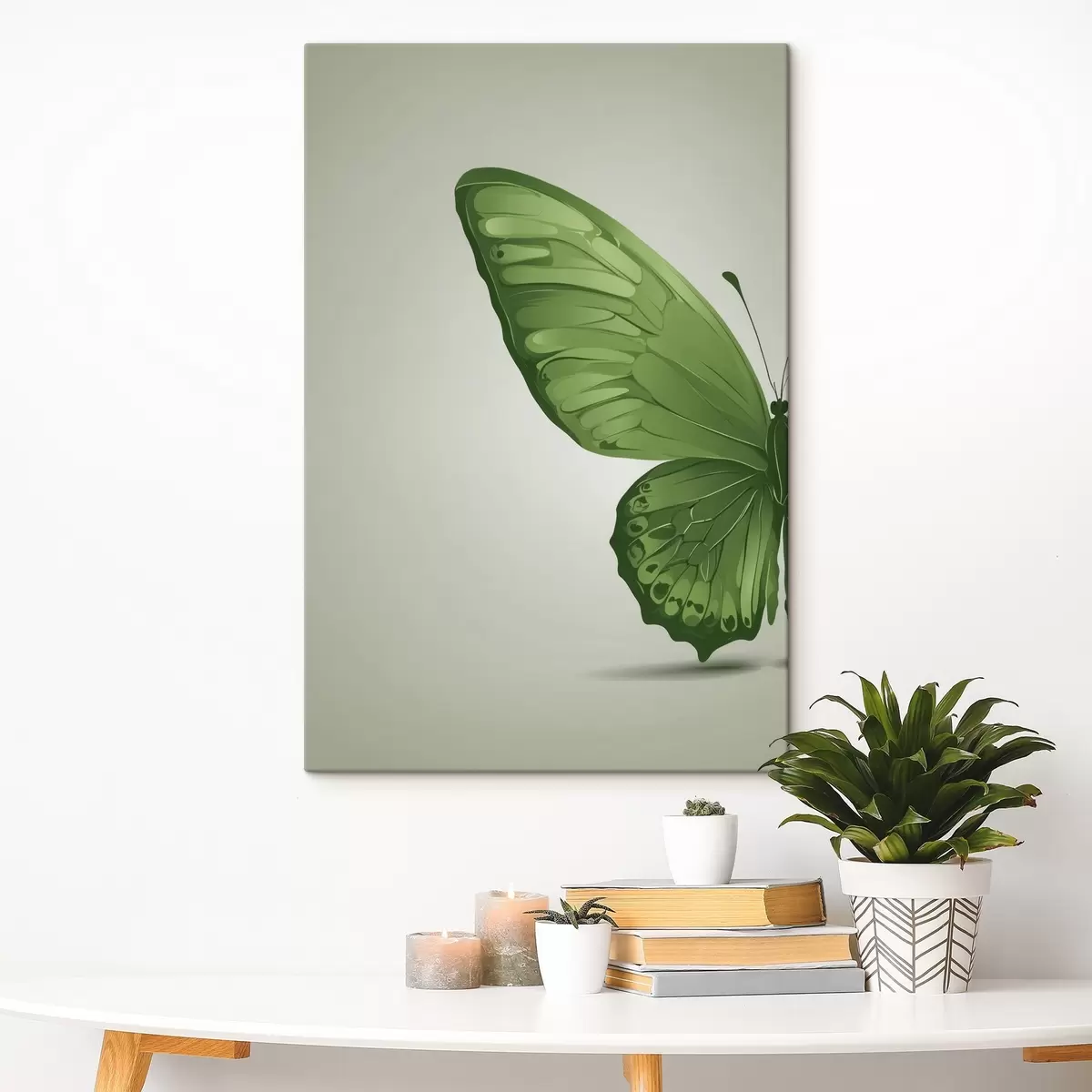 Wandbilder Linker Flügel eines grünen Schmetterlings auf weißem Hintergrund s40062