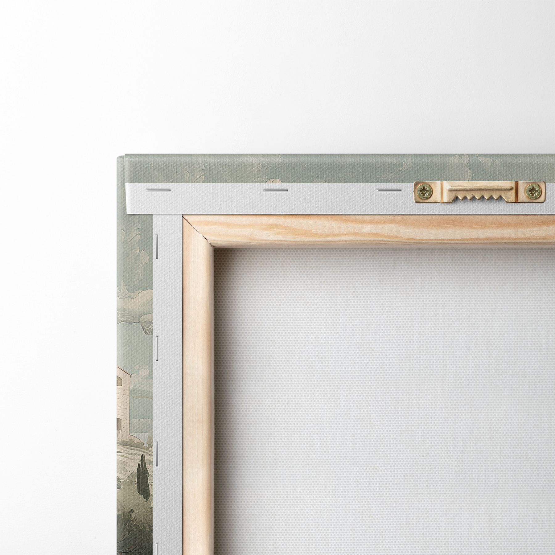 Um die Leinwand auf Keilrahmen zu spannen, ohne das Bild zu beschädigen, verwenden wir ein gespiegeltes Bild.