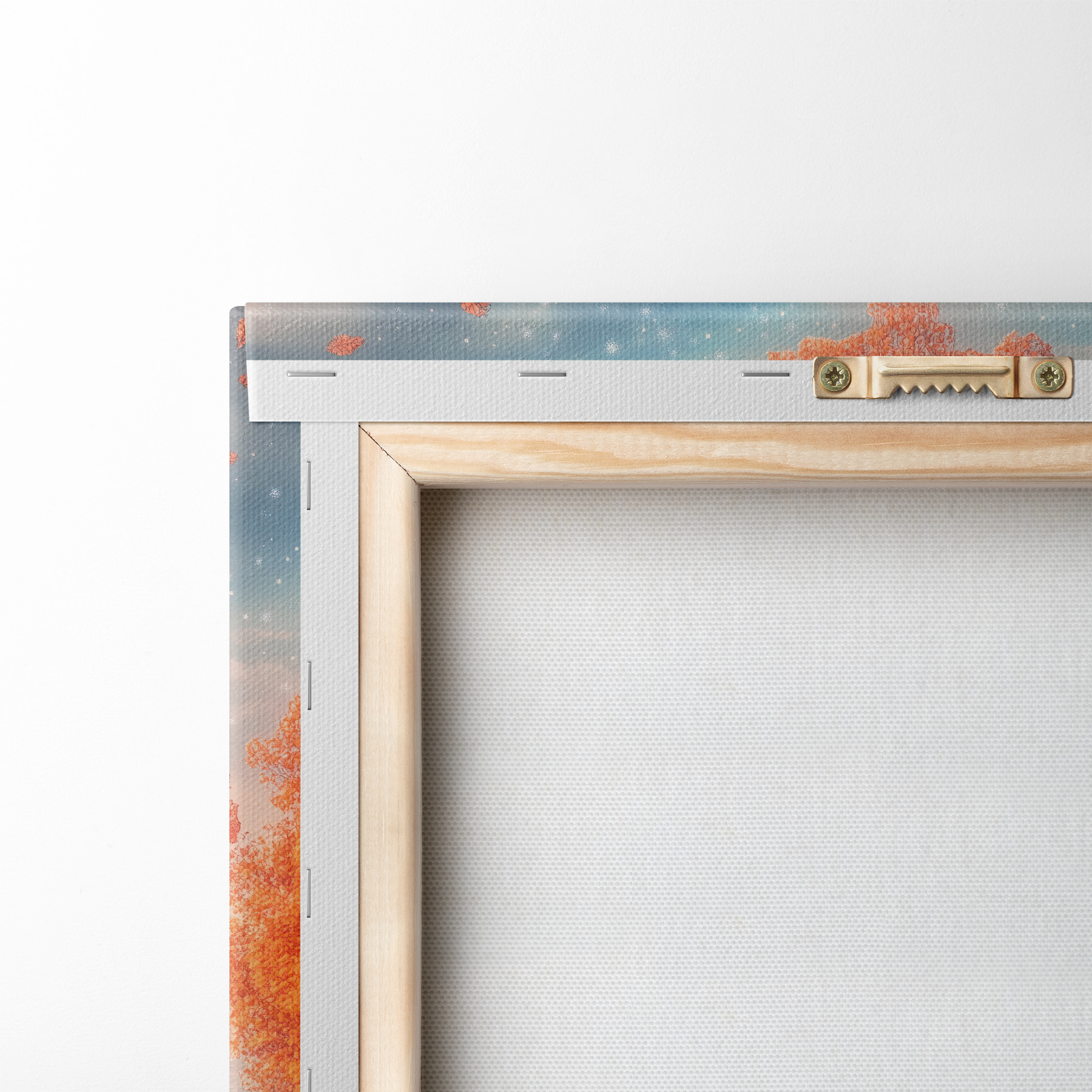 Um die Leinwand auf Keilrahmen zu spannen, ohne das Bild zu beschädigen, verwenden wir ein gespiegeltes Bild.