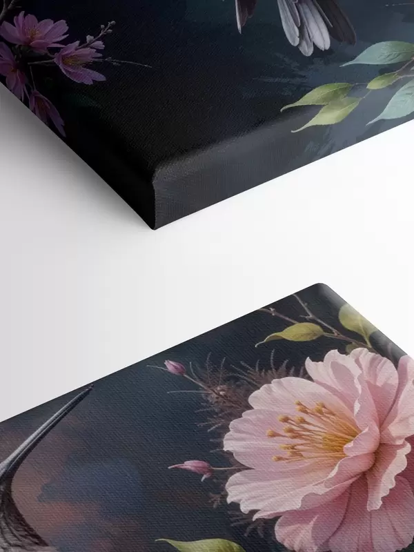 Wandbilder Ein bunter Kolibri auf einem Ast mit leuchtend rosa Blüten im Hintergrund Art. s40155