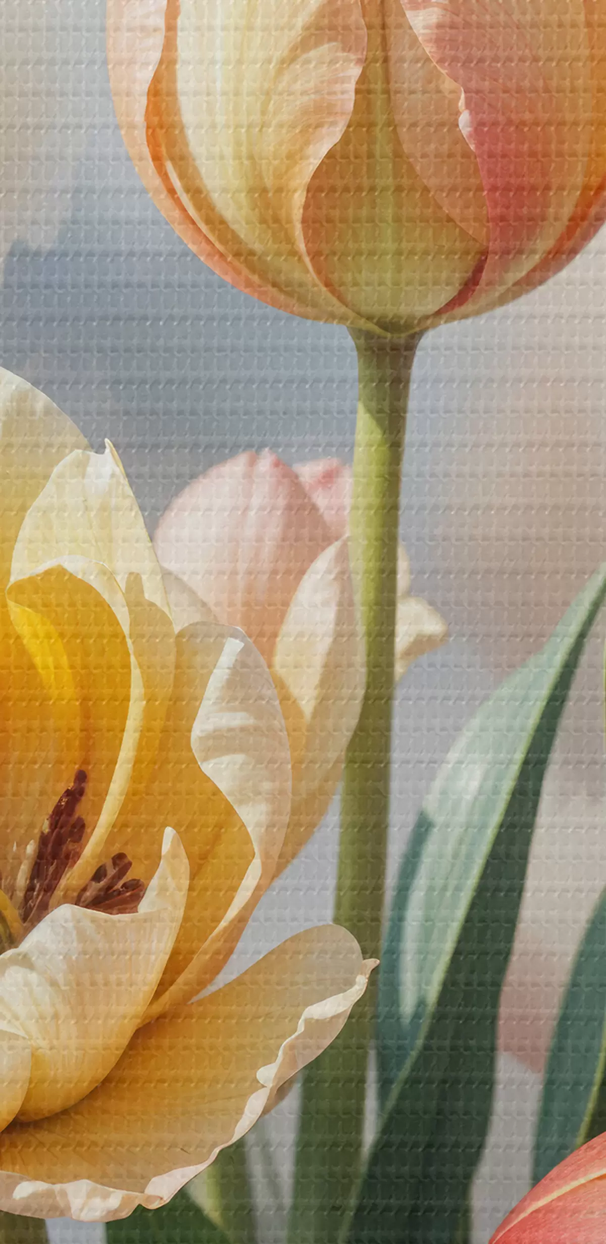 Drei Materialtypen stehen zur Verfügung: Economic Canvas - ein dichtes und haltbares Material für den Digitaldruck, identisch mit Malerleinwand, wasserfeste Oberfläche, realistische Wiedergabe von Details, mittelkörniges Material. Premium Canvas - die Textur ähnelt der einer Malerleinwand (verwobene kleine Fäden). Weiche, detaillierte Wiedergabe des Bildes auf einer matten Oberfläche. Eco-Premium - hochwertiges Gewebe aus 100% Baumwolle. Dank der natürlichen Baumwollfasern ist das Material langlebig und verschleißfest. Hervorragende Farbwiedergabe und Detailtreue.