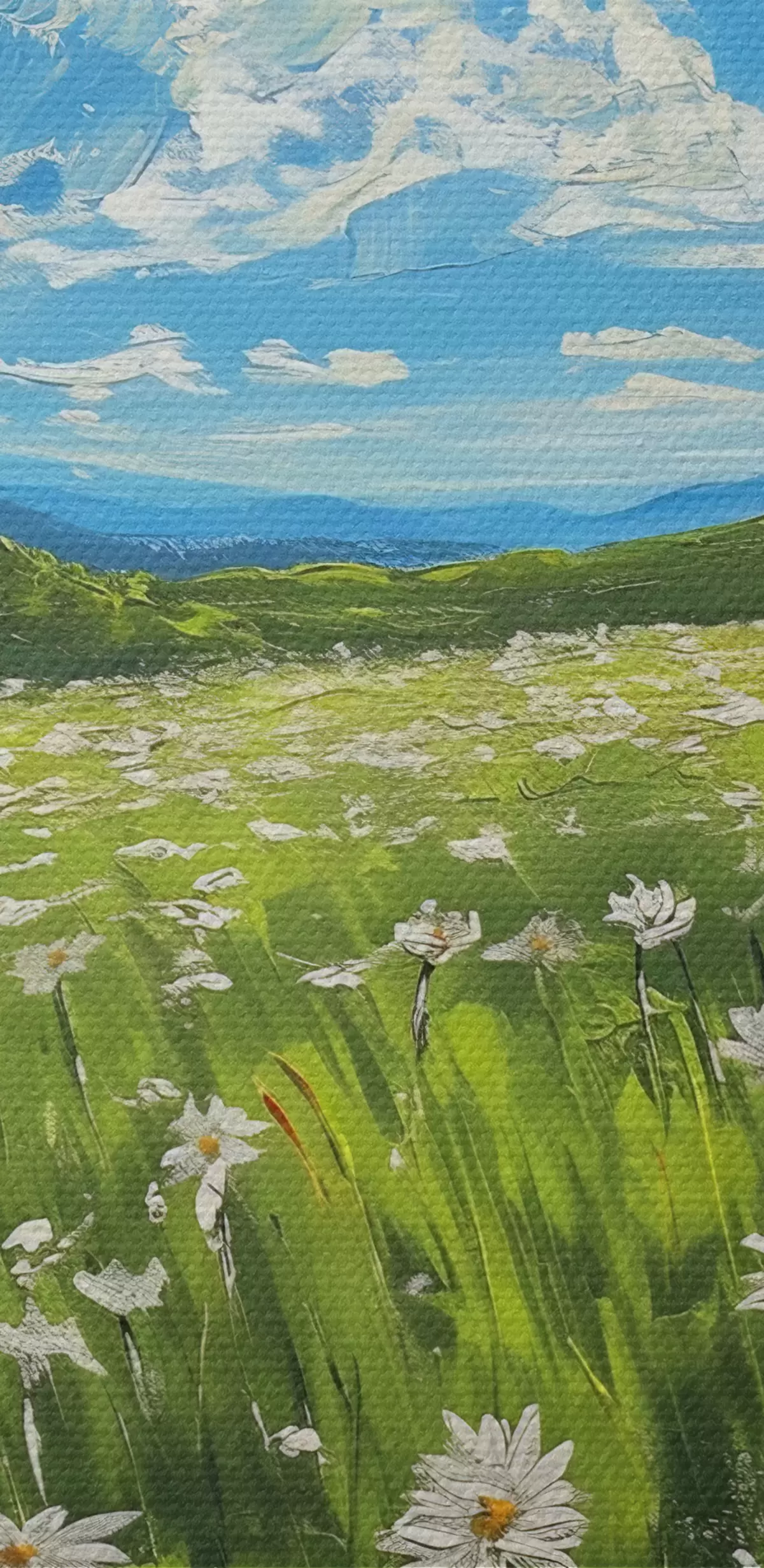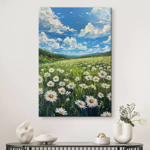 Wandbilder Landschaft mit Gänseblümchen auf dem Feld Art. s40255