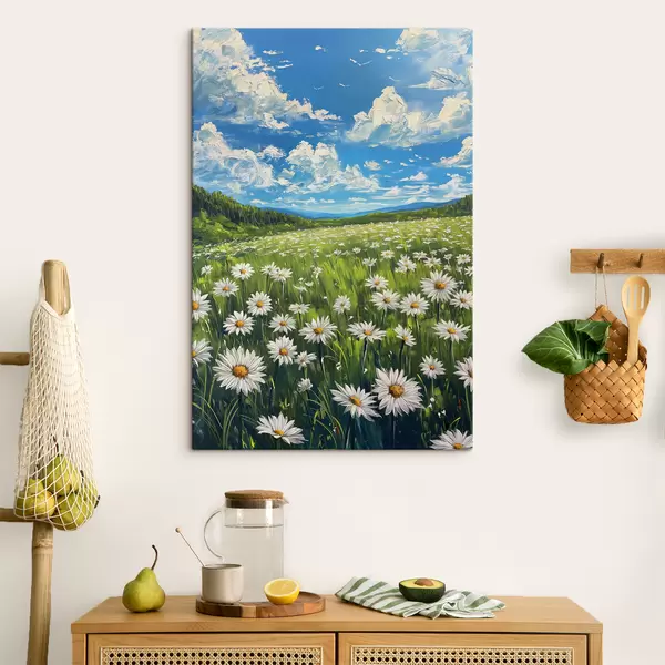 Wandbilder Landschaft mit Gänseblümchen auf dem Feld Art. s40255