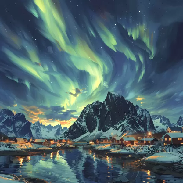 Wandbilder Lofoten Inseln, Nordlicht, Winterdorf Art. s40299