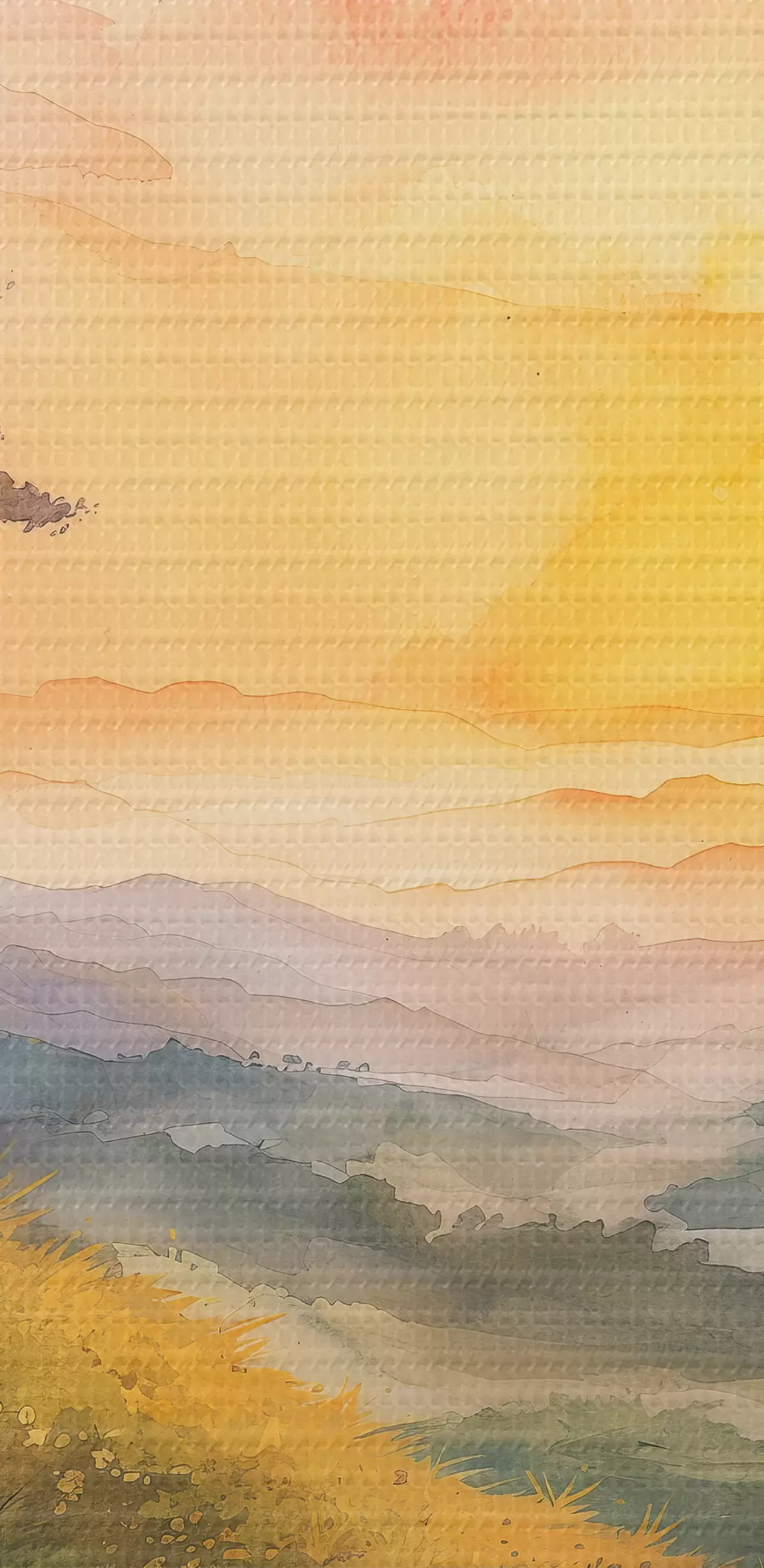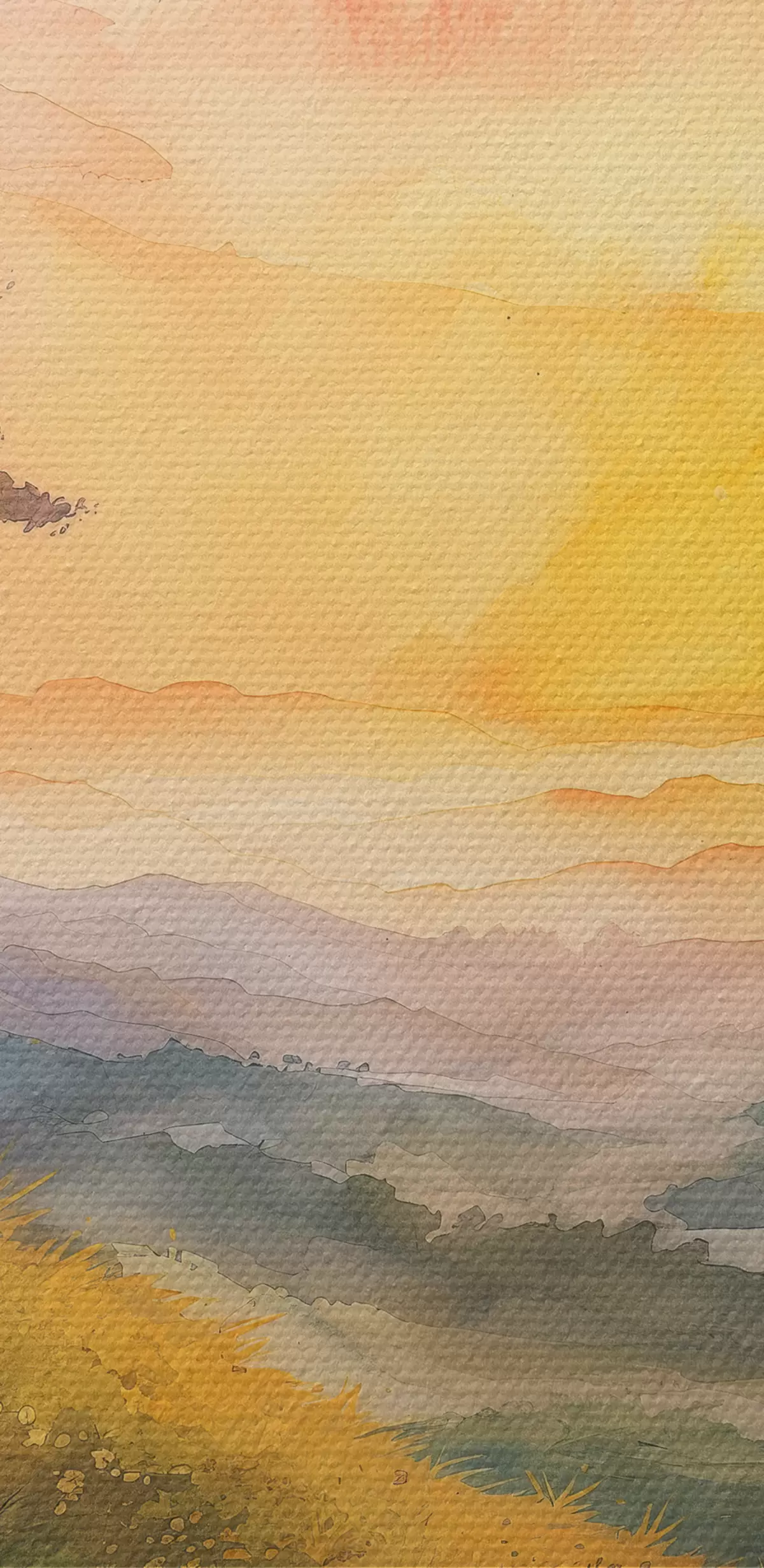 Wandbilder Wiese mit Hügeln und Baum, Blumen, Aquarell Art. s40303