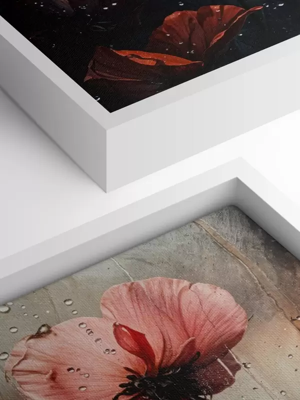 Drei Materialtypen stehen zur Verfügung: Economic Canvas - ein dichtes und haltbares Material für den Digitaldruck, identisch mit Malerleinwand, wasserfeste Oberfläche, realistische Wiedergabe von Details, mittelkörniges Material. Premium Canvas - die Textur ähnelt der einer Malerleinwand (verwobene kleine Fäden). Weiche, detaillierte Wiedergabe des Bildes auf einer matten Oberfläche. Eco-Premium - hochwertiges Gewebe aus 100% Baumwolle. Dank der natürlichen Baumwollfasern ist das Material langlebig und verschleißfest. Hervorragende Farbwiedergabe und Detailtreue.