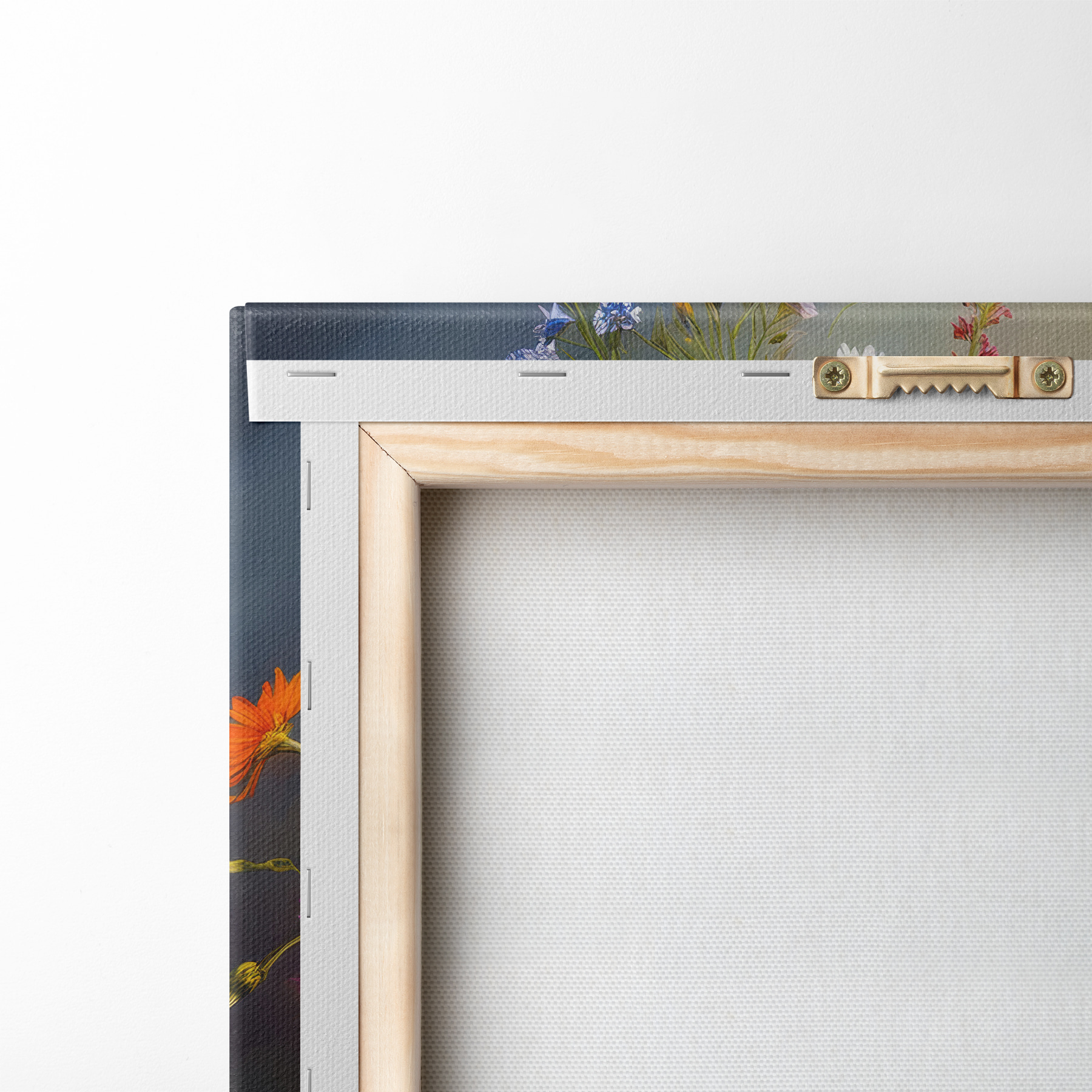 Um die Leinwand auf Keilrahmen zu spannen, ohne das Bild zu beschädigen, verwenden wir ein gespiegeltes Bild.