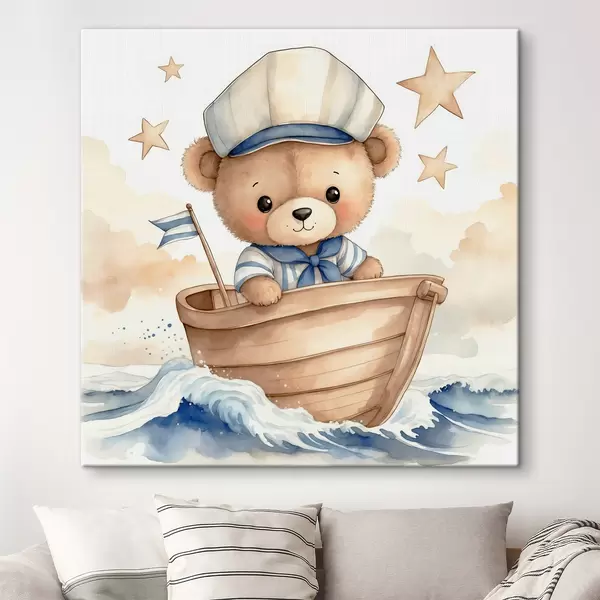 Wandbilder Niedlicher Aquarellbär in einem Boot Art. s40428