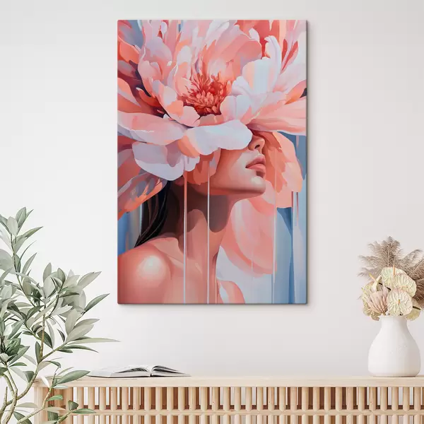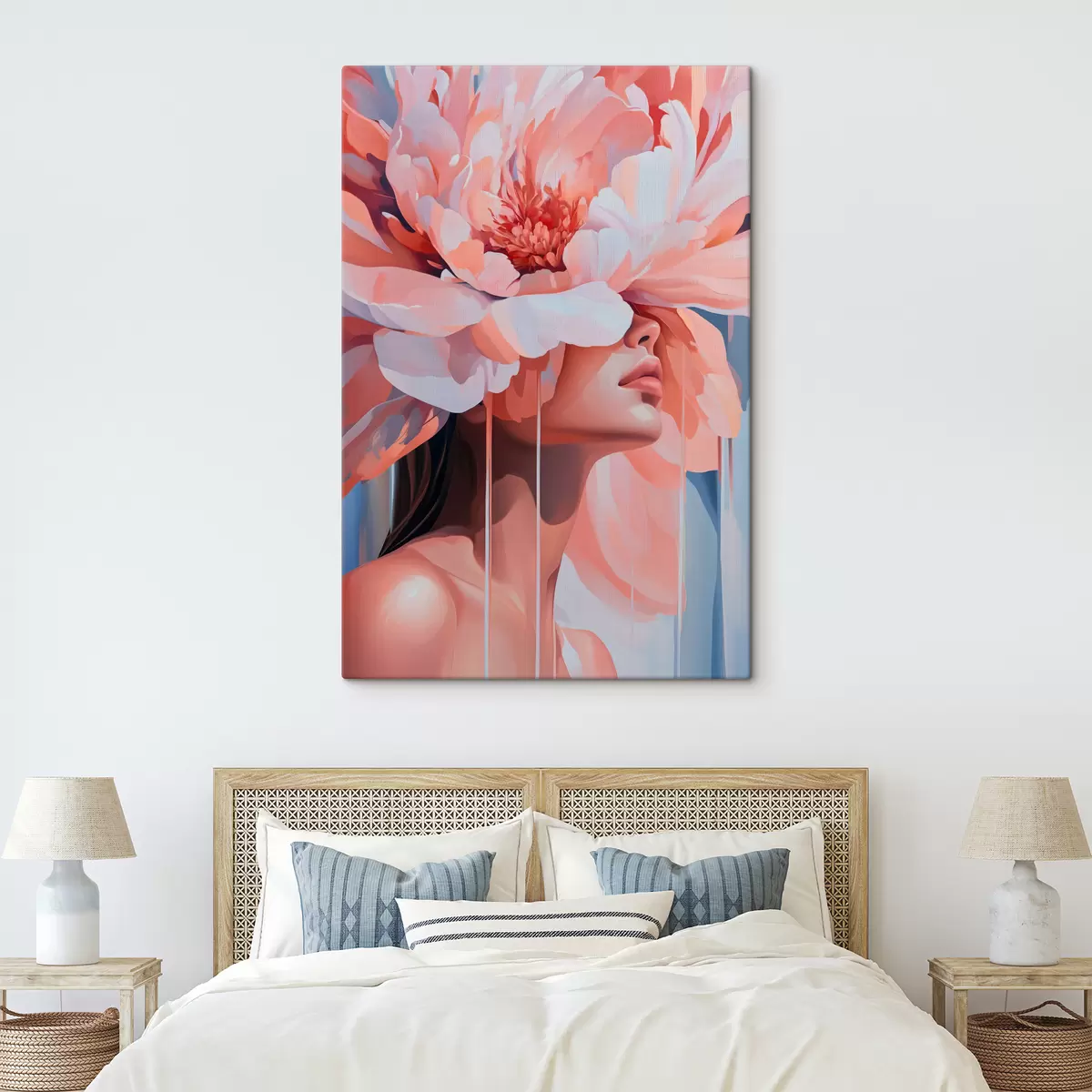 Wandbilder Porträt einer Frau mit einer großen rosa Blume auf dem Kopf Art. s40430