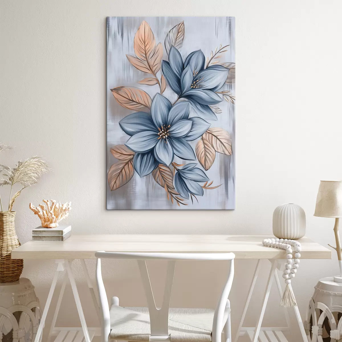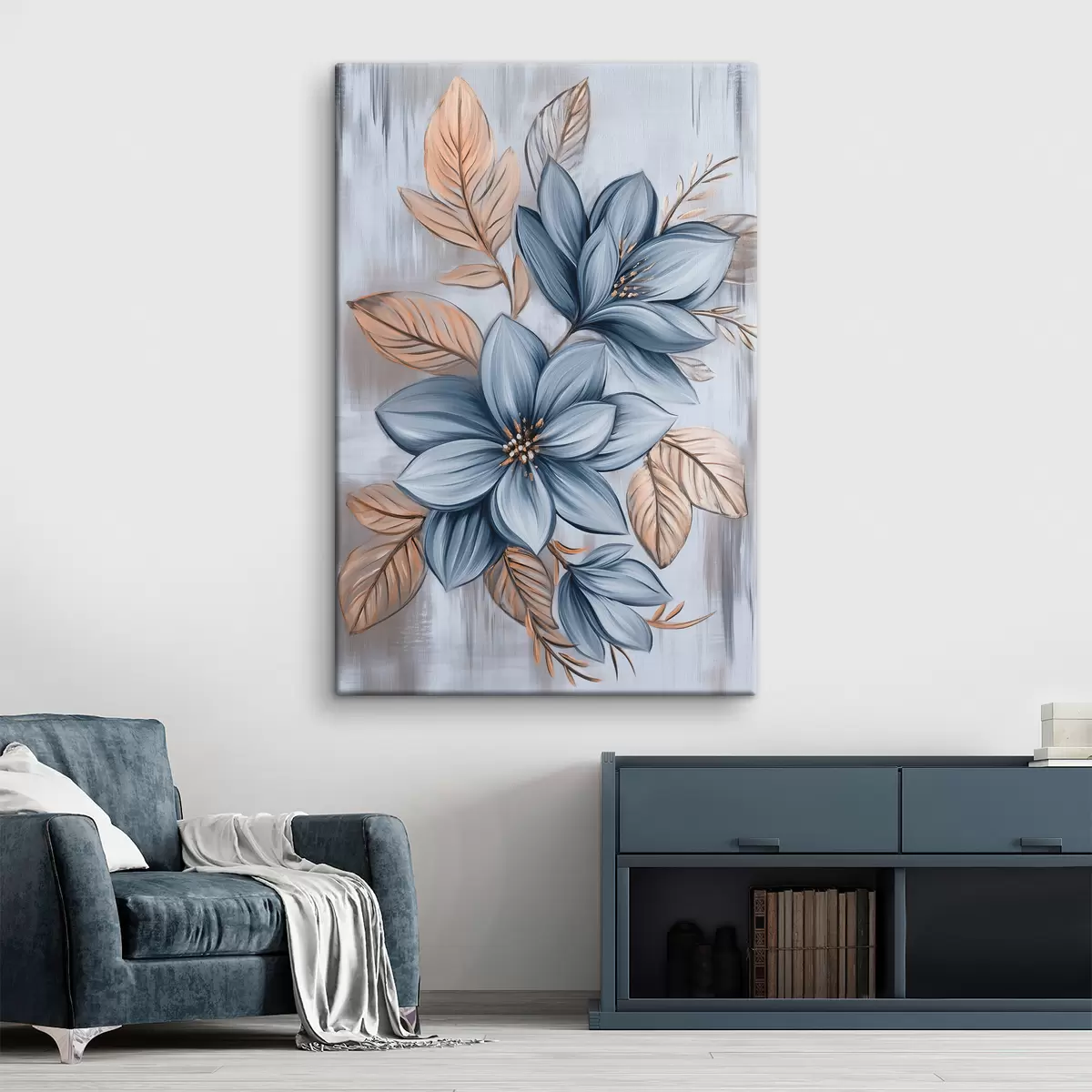 Wandbilder Blaue Blumen auf grauem Hintergrund Art. s40453