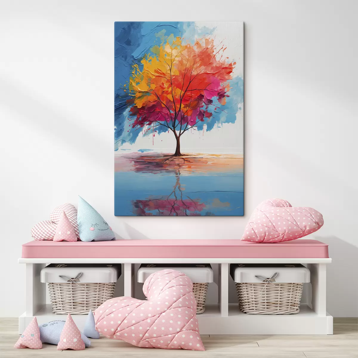 Wandbilder Abstrakter bunter Baum auf einem See s40455