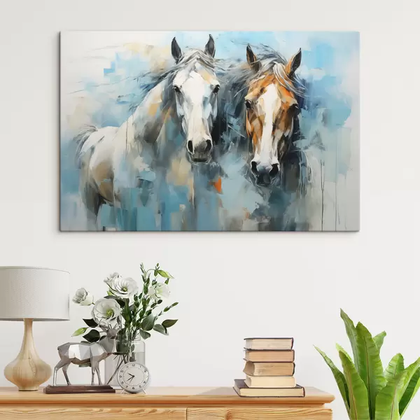 Wandbilder Pferde abstrakte Malerei, weiß, blau, braun Farbe s40493