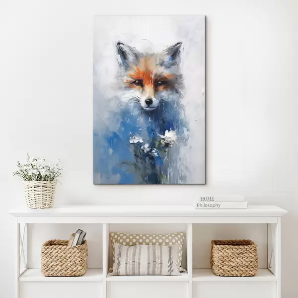 Wandbilder Abstraktes Porträt eines Fuchses in blauen Farbflecken Art. s40524