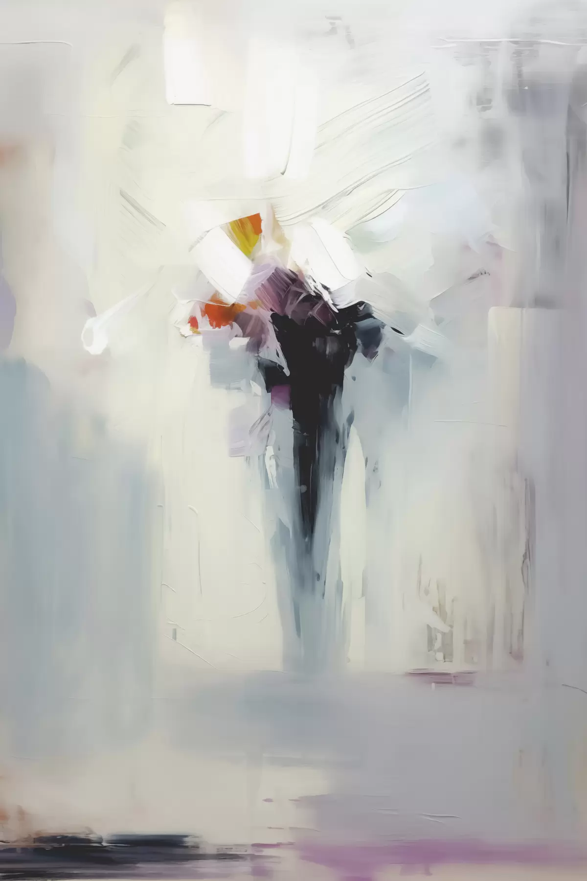 Wandbilder Astrale Abstraktion, schwarzer Fleck auf weiß-grauem Hintergrund, Nachahmung von Pinselstrichen Art. s40526