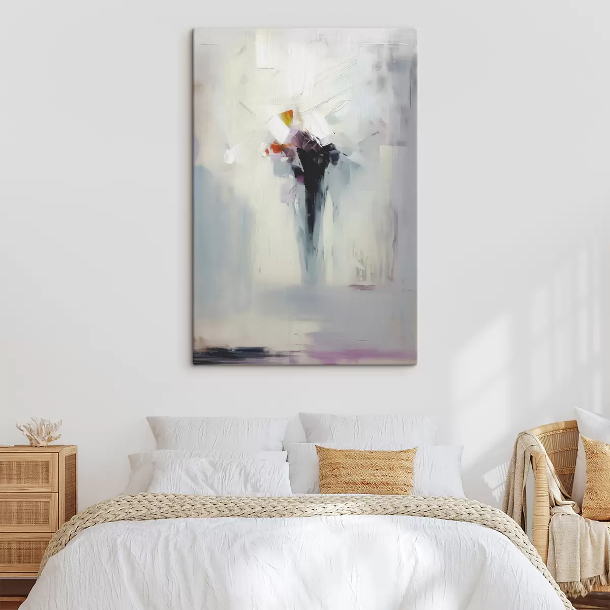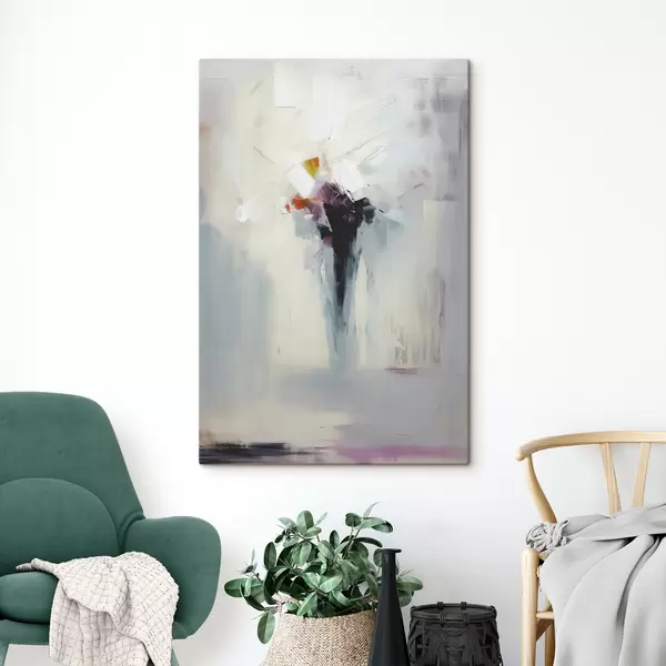 Wandbilder Astrale Abstraktion, schwarzer Fleck auf weiß-grauem Hintergrund, Nachahmung von Pinselstrichen s40526