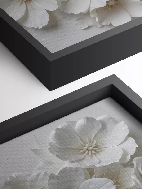 Wandbilder Weiße Blüten mit zarten Blütenblättern, angeordnet in einem wunderschönen Blumenmuster vor einem hellen Hintergrund Art. s40548