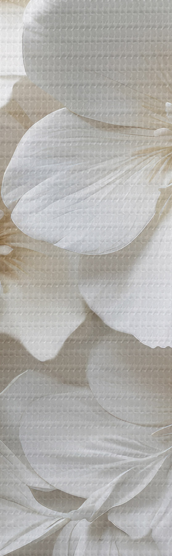 Wandbilder Weiße Blüten mit zarten Blütenblättern, angeordnet in einem wunderschönen Blumenmuster vor einem hellen Hintergrund s40548