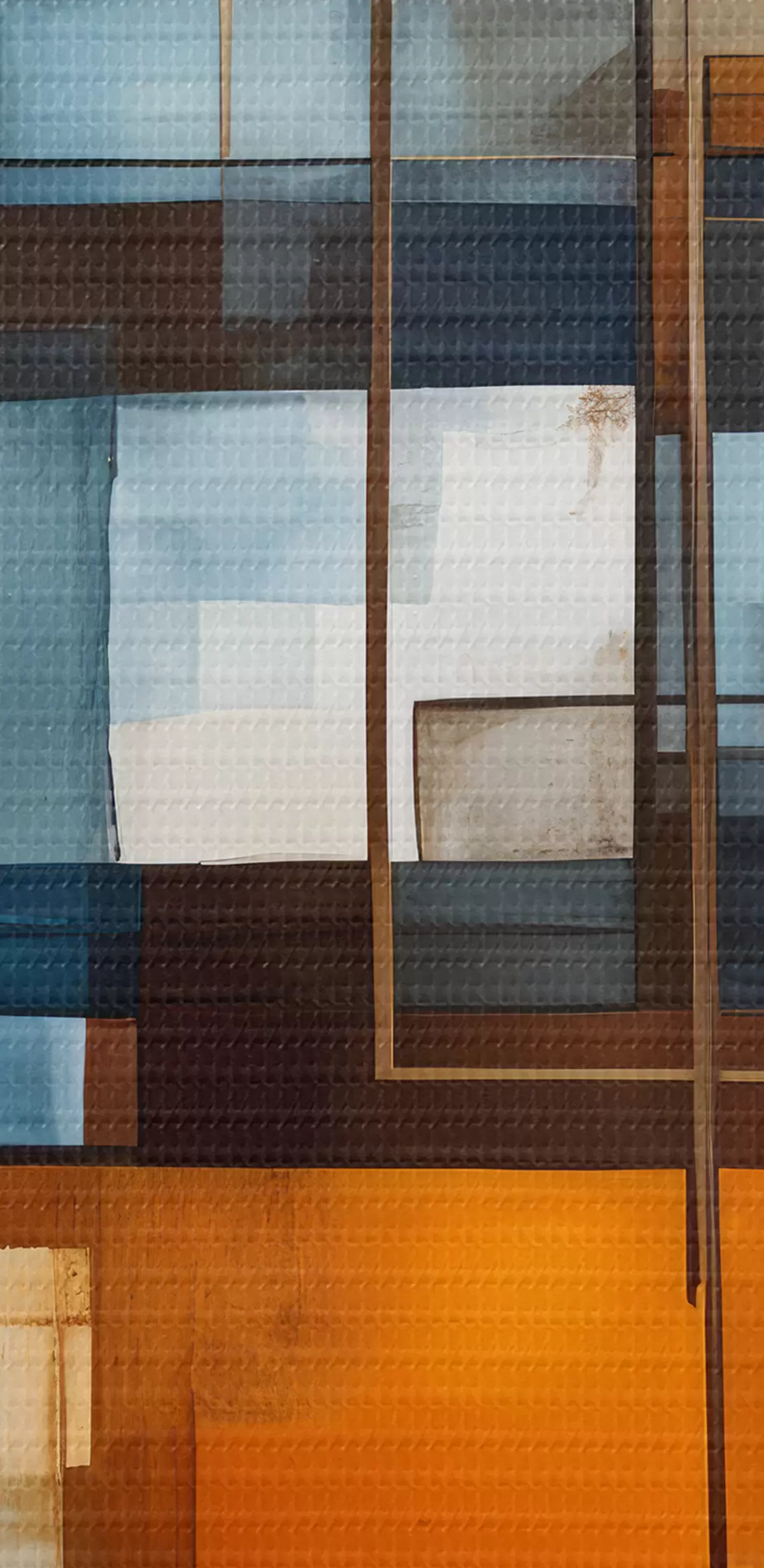 Wandbilder Abstrakte geometrische Formen in Blau-, Orange- und Brauntönen ergeben eine moderne minimalistische Komposition Art. s40563