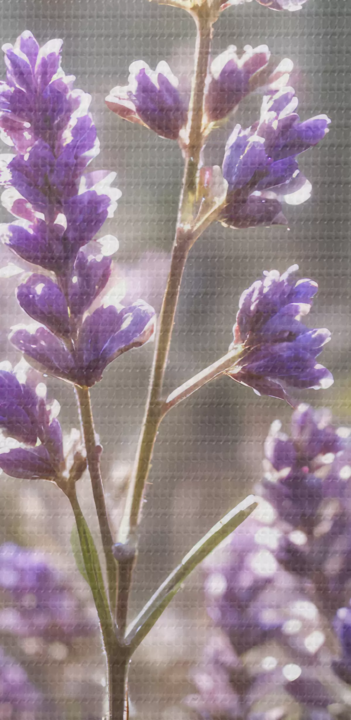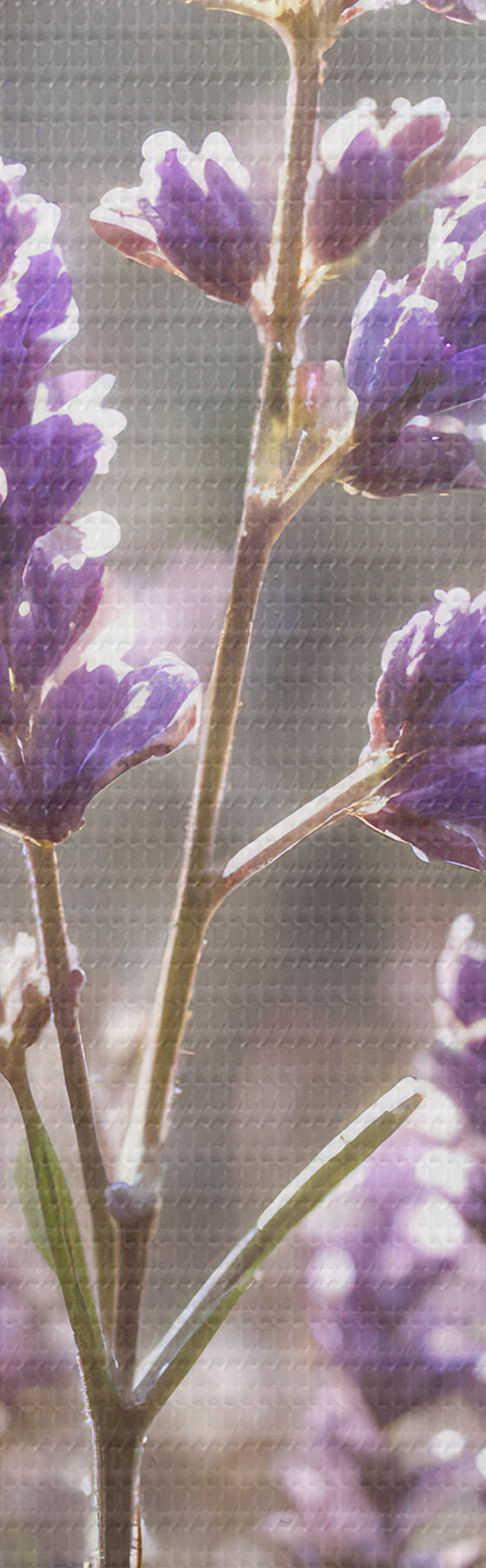 Wandbilder Lila Lavendelblüten auf einem Feld mit verschwommenem Waldhintergrund und durchfallendem Sonnenlicht s40570