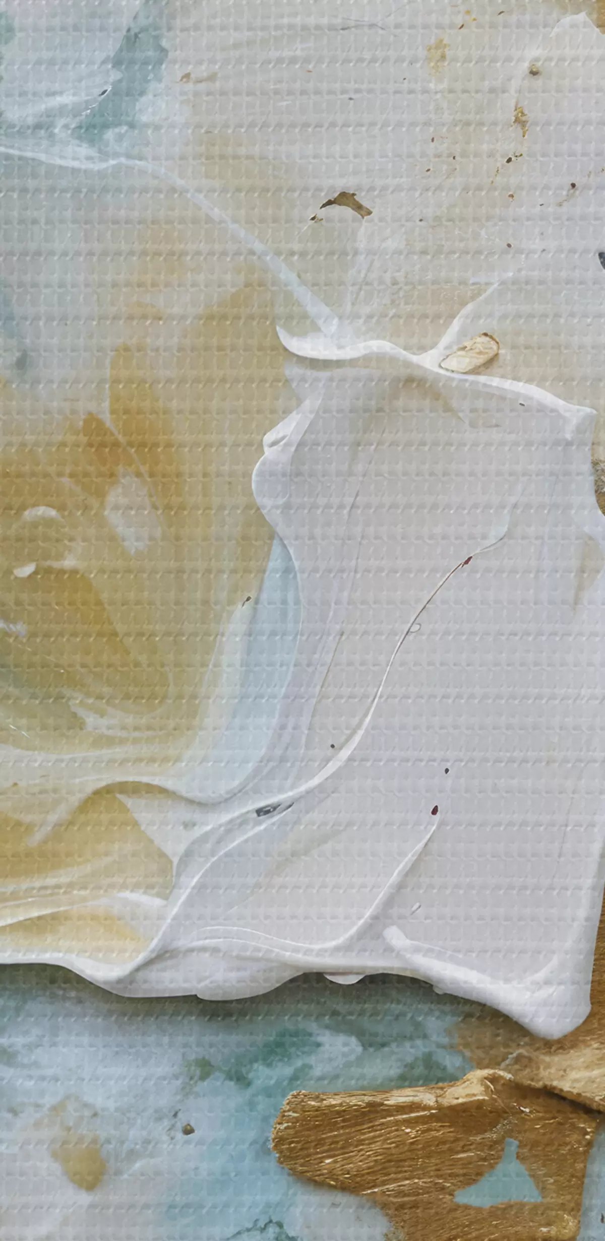 Wandbilder Abblätternde Farbe mit Schichten aus weißen, blauen und gelben Farben, die einen abstrakten, strukturierten Druck erzeugen s40577