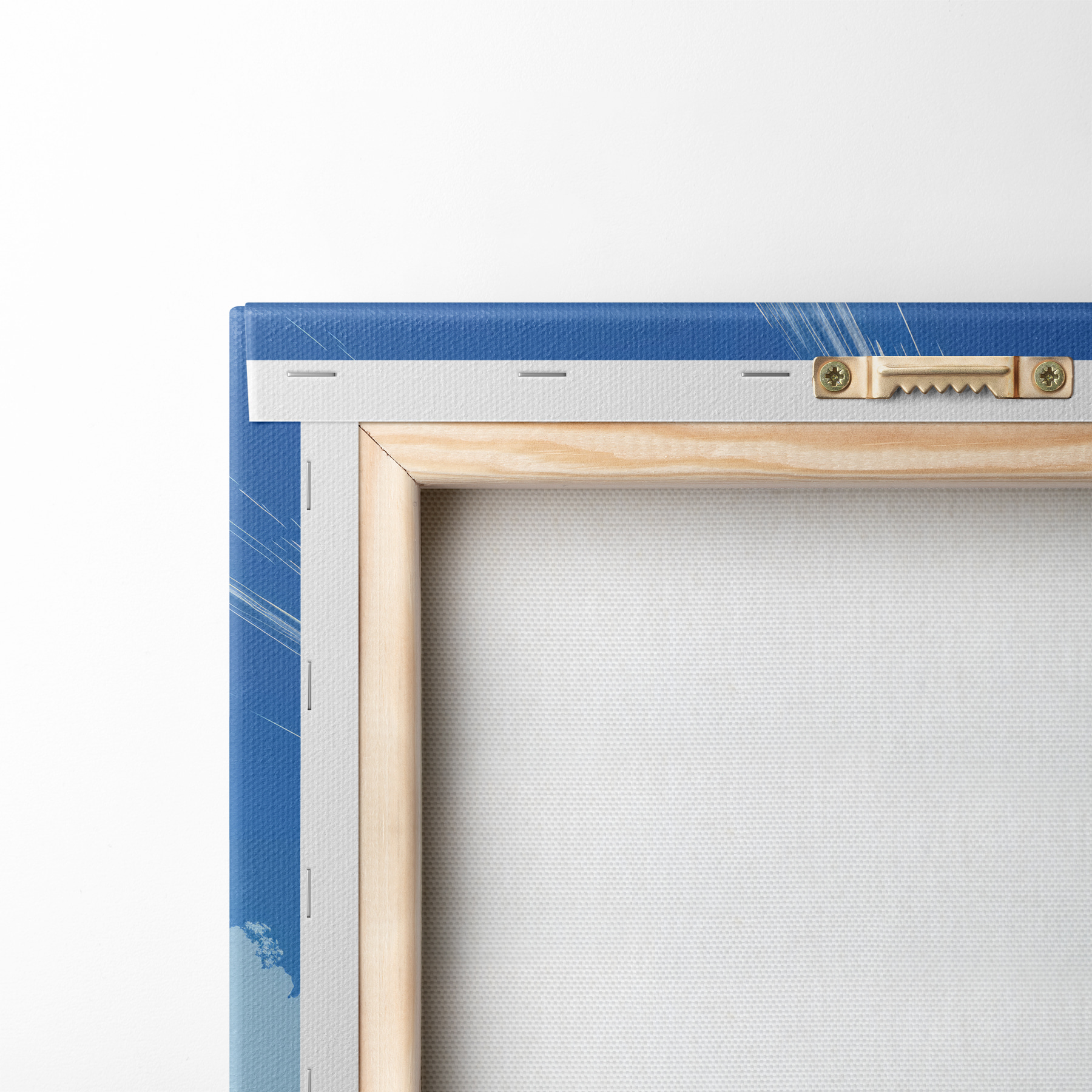 Um die Leinwand auf Keilrahmen zu spannen, ohne das Bild zu beschädigen, verwenden wir ein gespiegeltes Bild.