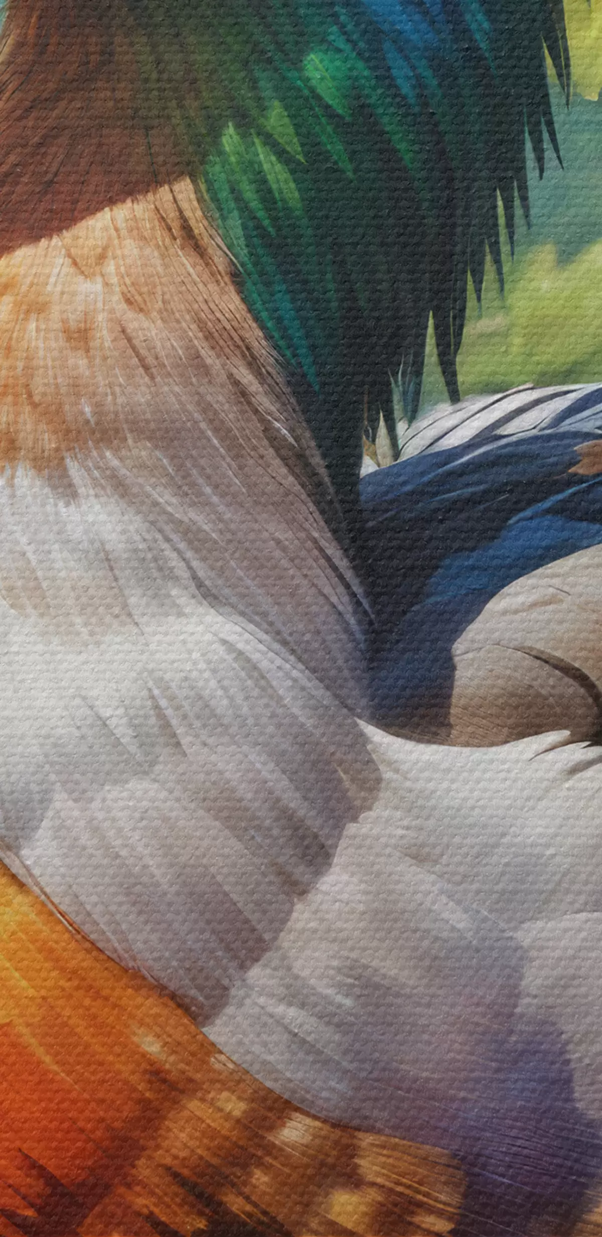 Drei Materialtypen stehen zur Verfügung: Economic Canvas - ein dichtes und haltbares Material für den Digitaldruck, identisch mit Malerleinwand, wasserfeste Oberfläche, realistische Wiedergabe von Details, mittelkörniges Material. Premium Canvas - die Textur ähnelt der einer Malerleinwand (verwobene kleine Fäden). Weiche, detaillierte Wiedergabe des Bildes auf einer matten Oberfläche. Eco-Premium - hochwertiges Gewebe aus 100% Baumwolle. Dank der natürlichen Baumwollfasern ist das Material langlebig und verschleißfest. Hervorragende Farbwiedergabe und Detailtreue.
