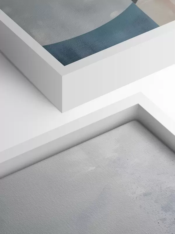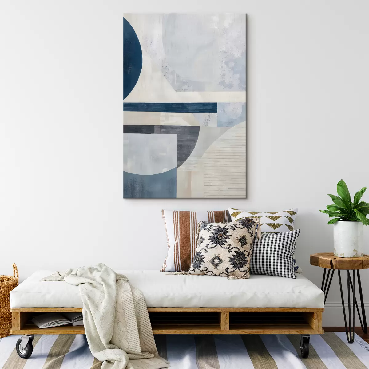 Wandbilder Eine minimalistische Abstraktion mit geometrischen Formen und Texturen in Blau-, Grau- und Weißtönen Art. s40596