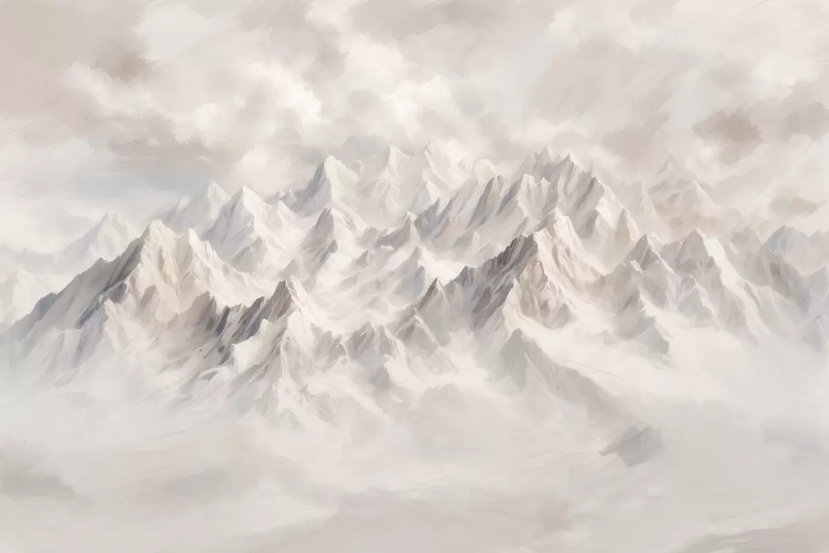 Wandbilder Weiß verschneite Berge im Nebel s40629