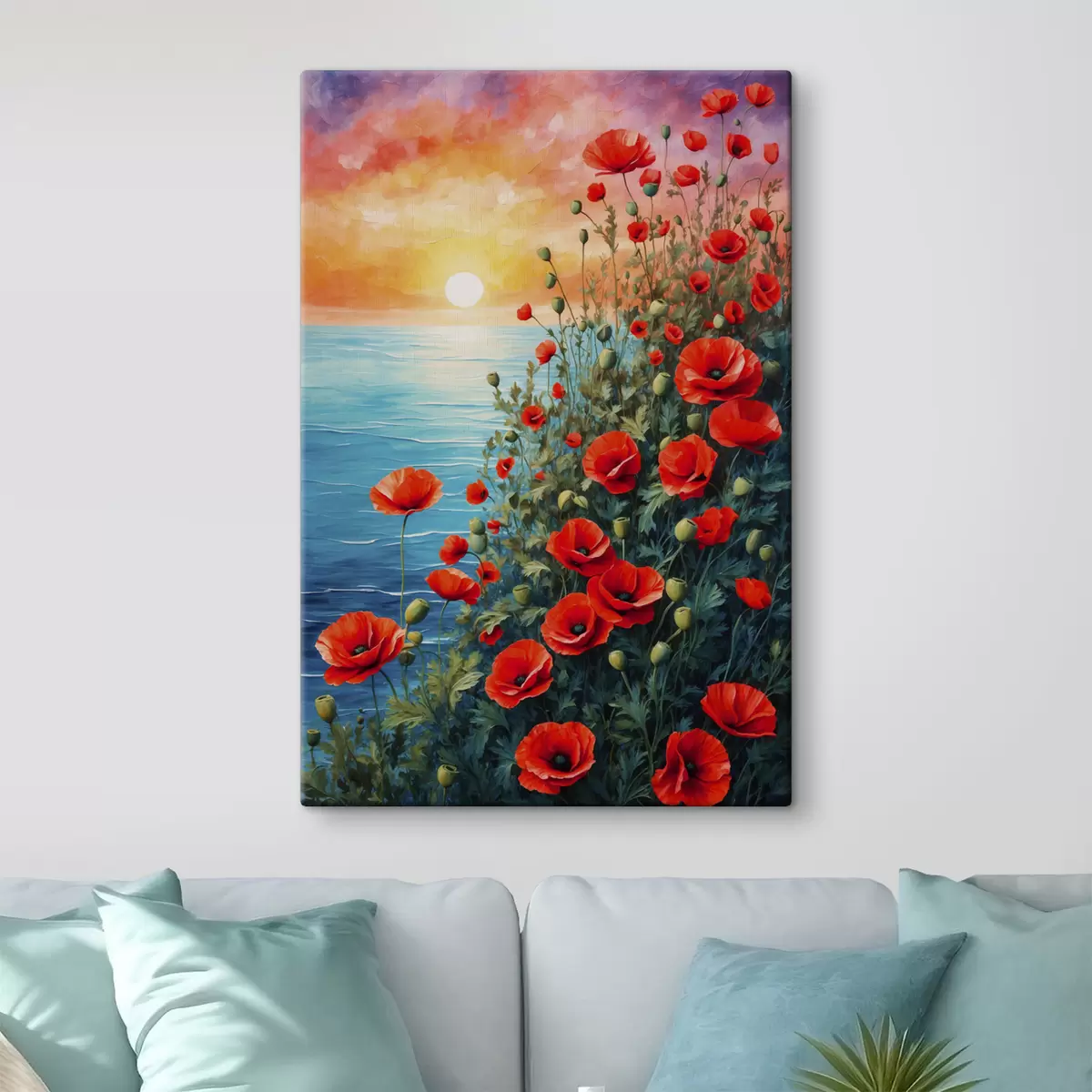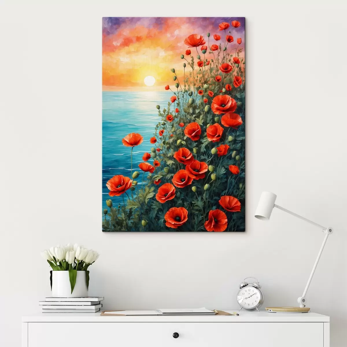 Wandbilder Blühende Mohnblumen auf dem Meer Hintergrund Art. s40637