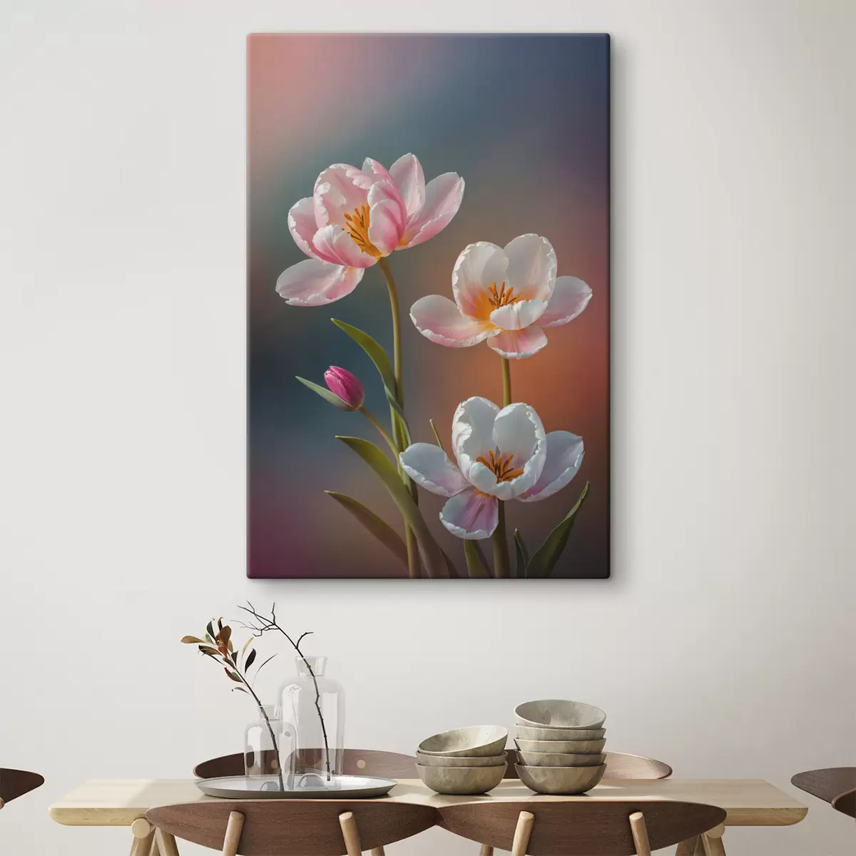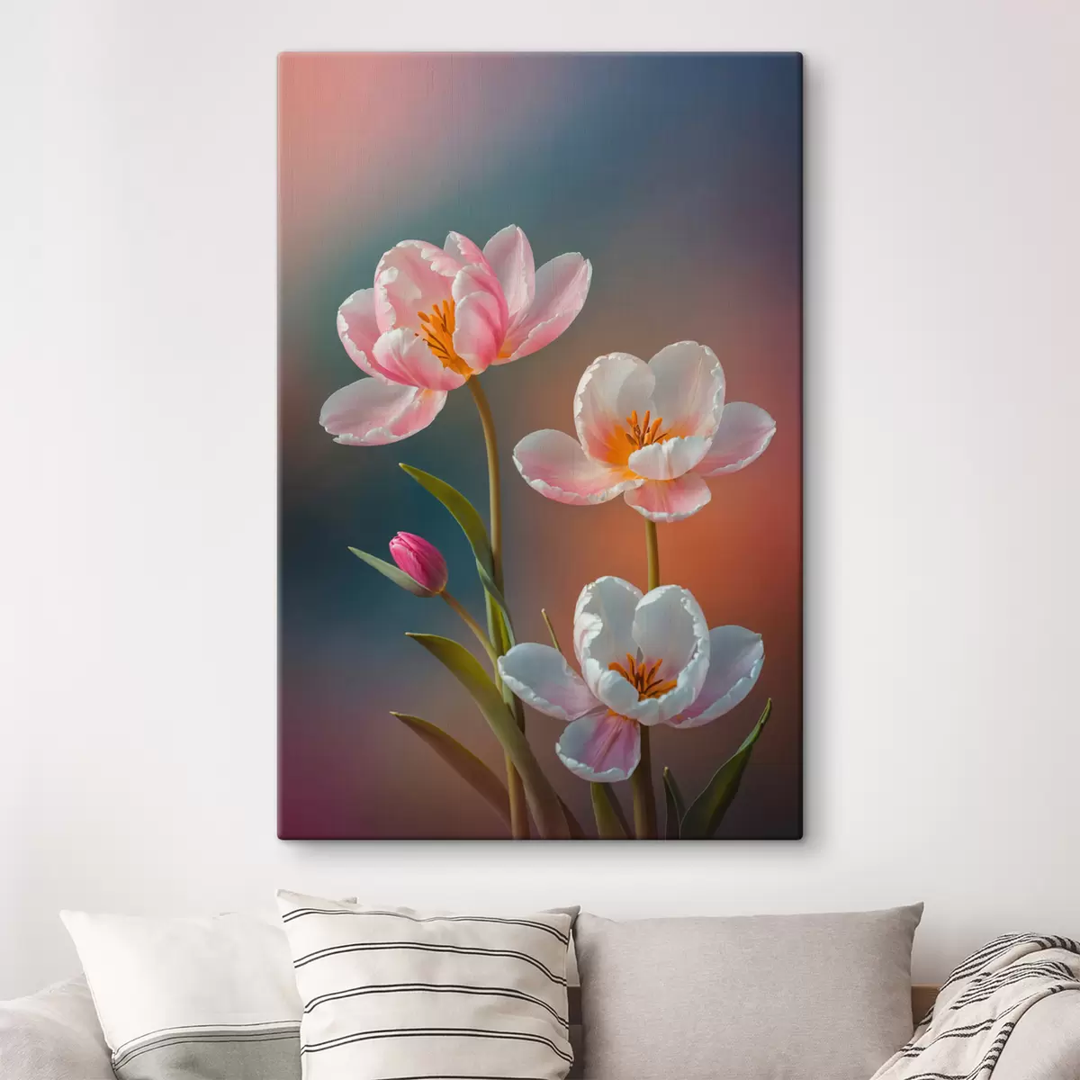 Drei Materialtypen stehen zur Verfügung: Economic Canvas - ein dichtes und haltbares Material für den Digitaldruck, identisch mit Malerleinwand, wasserfeste Oberfläche, realistische Wiedergabe von Details, mittelkörniges Material. Premium Canvas - die Textur ähnelt der einer Malerleinwand (verwobene kleine Fäden). Weiche, detaillierte Wiedergabe des Bildes auf einer matten Oberfläche. Eco-Premium - hochwertiges Gewebe aus 100% Baumwolle. Dank der natürlichen Baumwollfasern ist das Material langlebig und verschleißfest. Hervorragende Farbwiedergabe und Detailtreue.