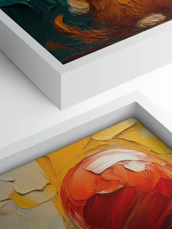 Drei Materialtypen stehen zur Verfügung: Economic Canvas - ein dichtes und haltbares Material für den Digitaldruck, identisch mit Malerleinwand, wasserfeste Oberfläche, realistische Wiedergabe von Details, mittelkörniges Material. Premium Canvas - die Textur ähnelt der einer Malerleinwand (verwobene kleine Fäden). Weiche, detaillierte Wiedergabe des Bildes auf einer matten Oberfläche. Eco-Premium - hochwertiges Gewebe aus 100% Baumwolle. Dank der natürlichen Baumwollfasern ist das Material langlebig und verschleißfest. Hervorragende Farbwiedergabe und Detailtreue.