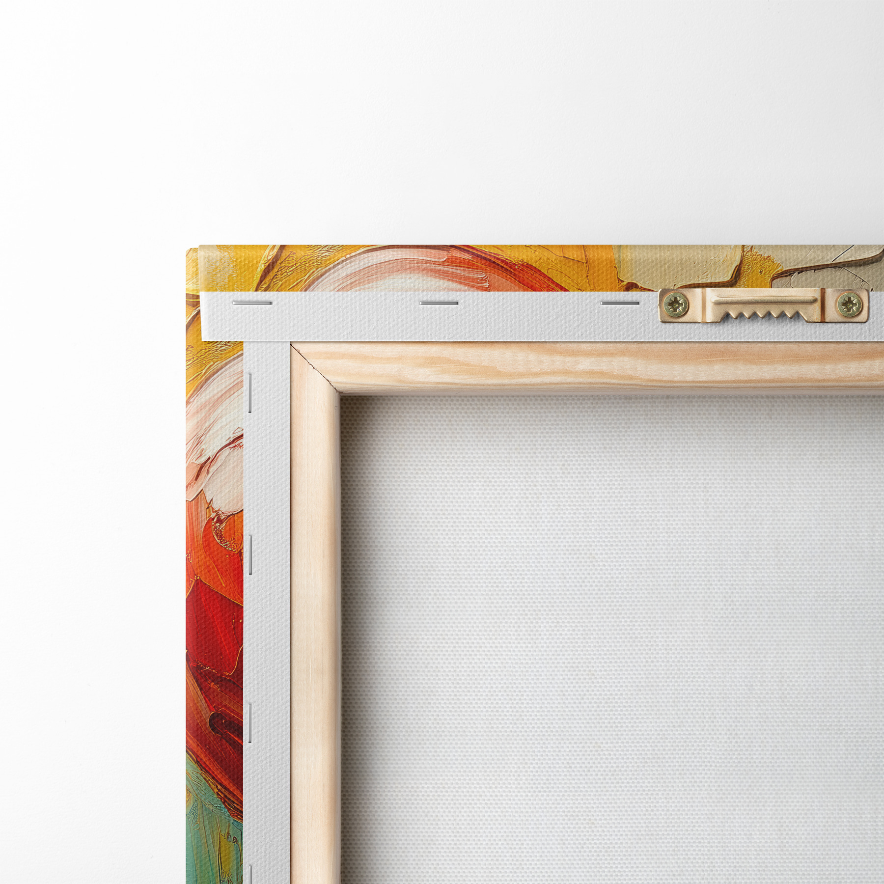 Um die Leinwand auf Keilrahmen zu spannen, ohne das Bild zu beschädigen, verwenden wir ein gespiegeltes Bild.