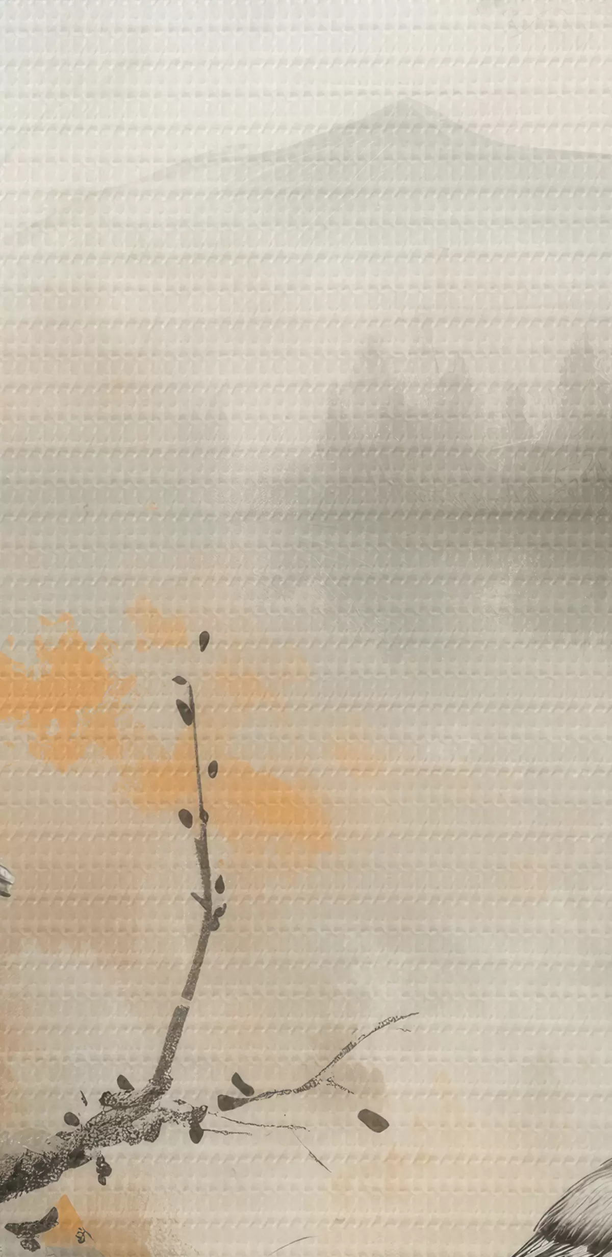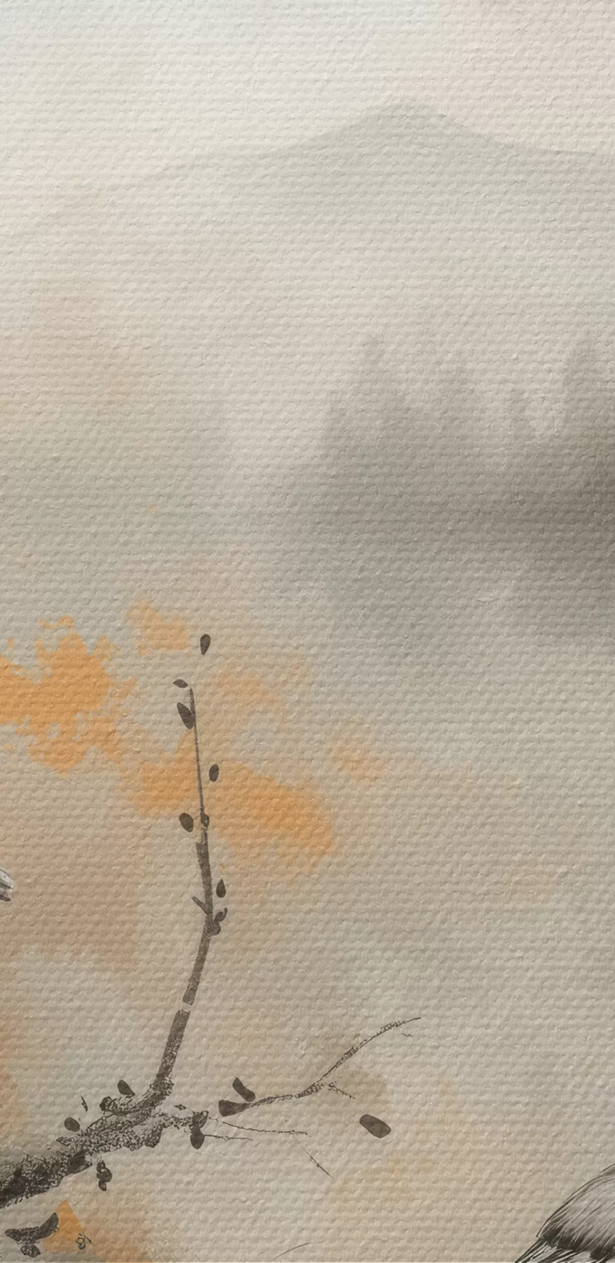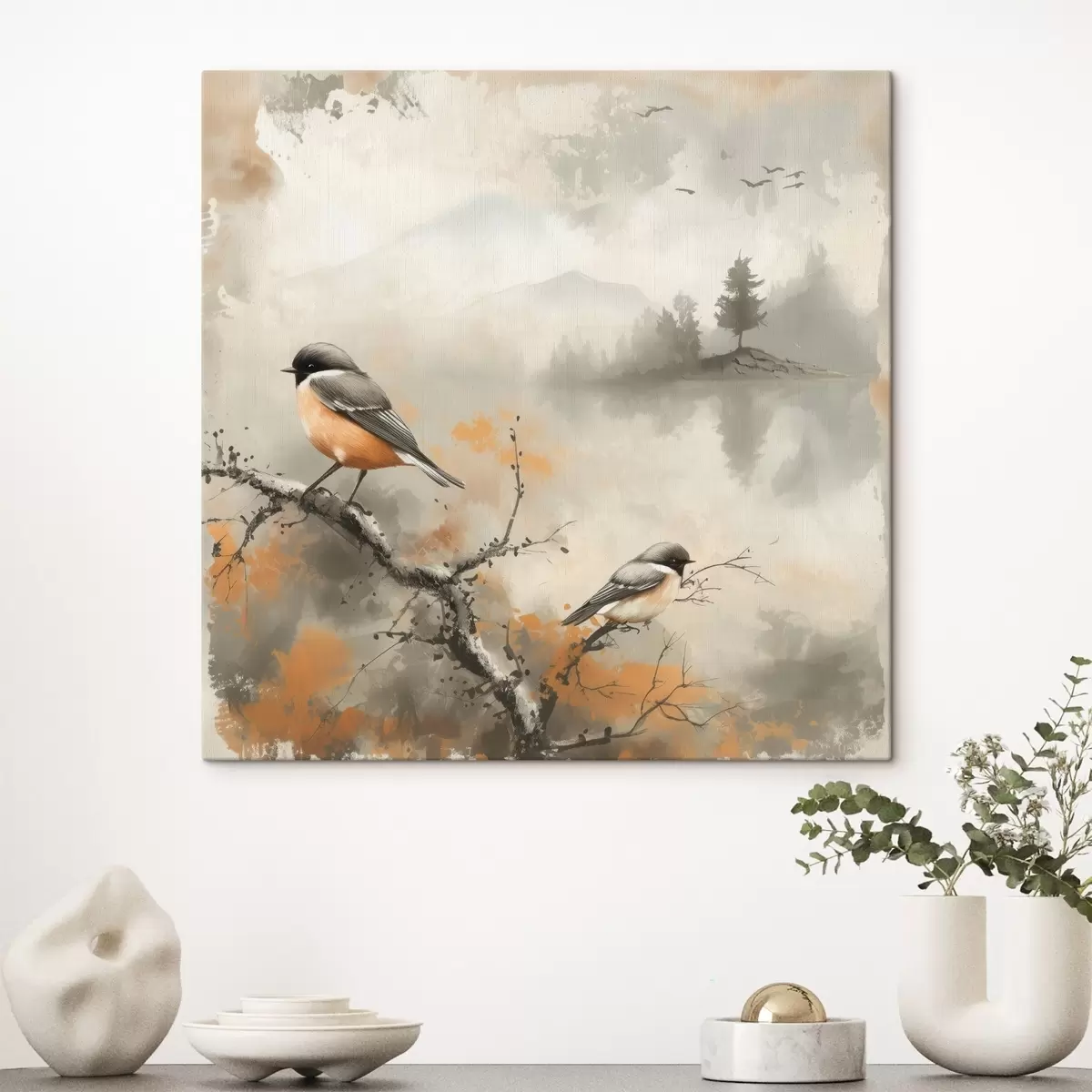 Wandbilder Aquarelllandschaft mit Vögeln, die auf einem Zweig sitzen, in Pastellfarben Art. s40655