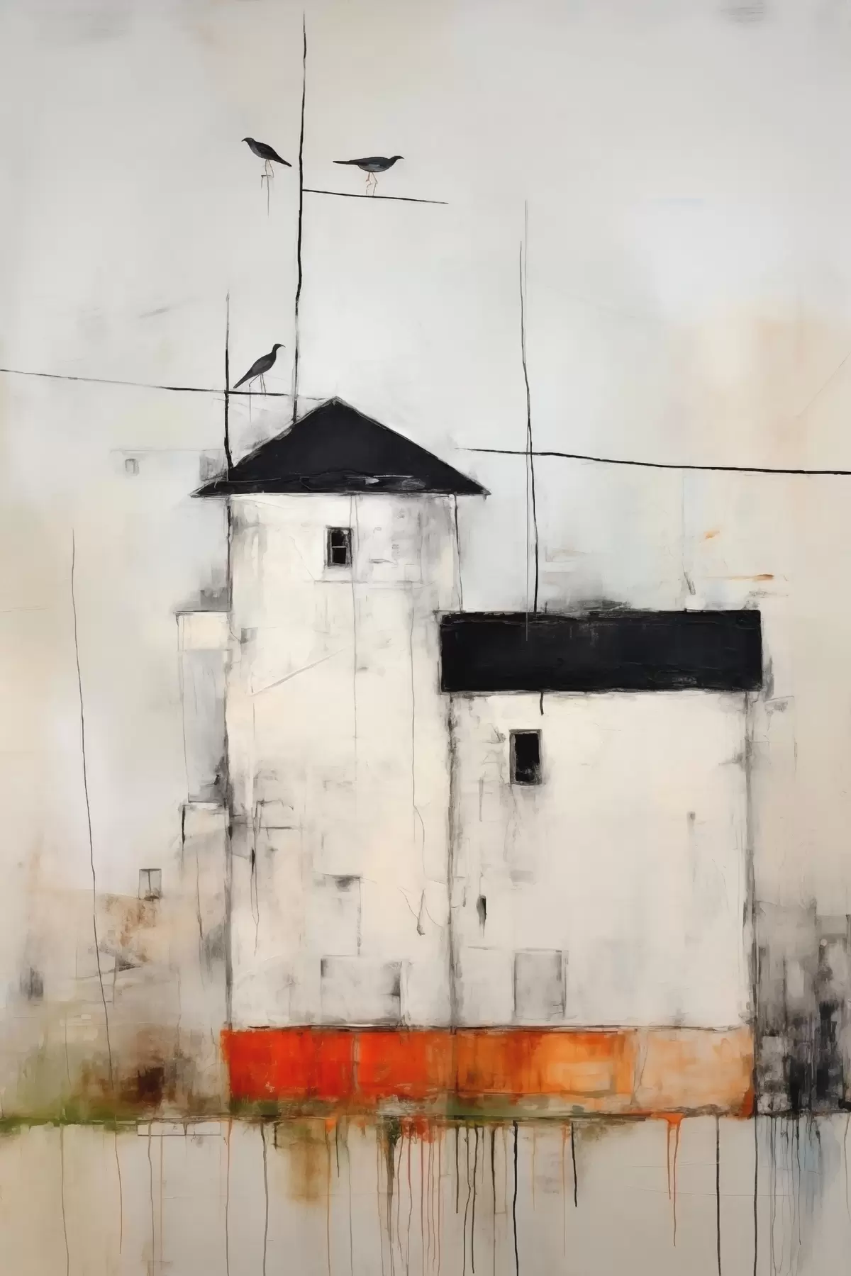 Wandbilder Abstrakte Szene mit Vögeln und Gebäude Art. s40685