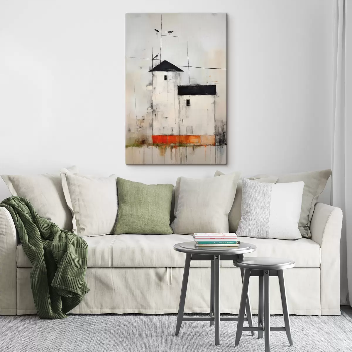 Wandbilder Abstrakte Szene mit Vögeln und Gebäude s40685