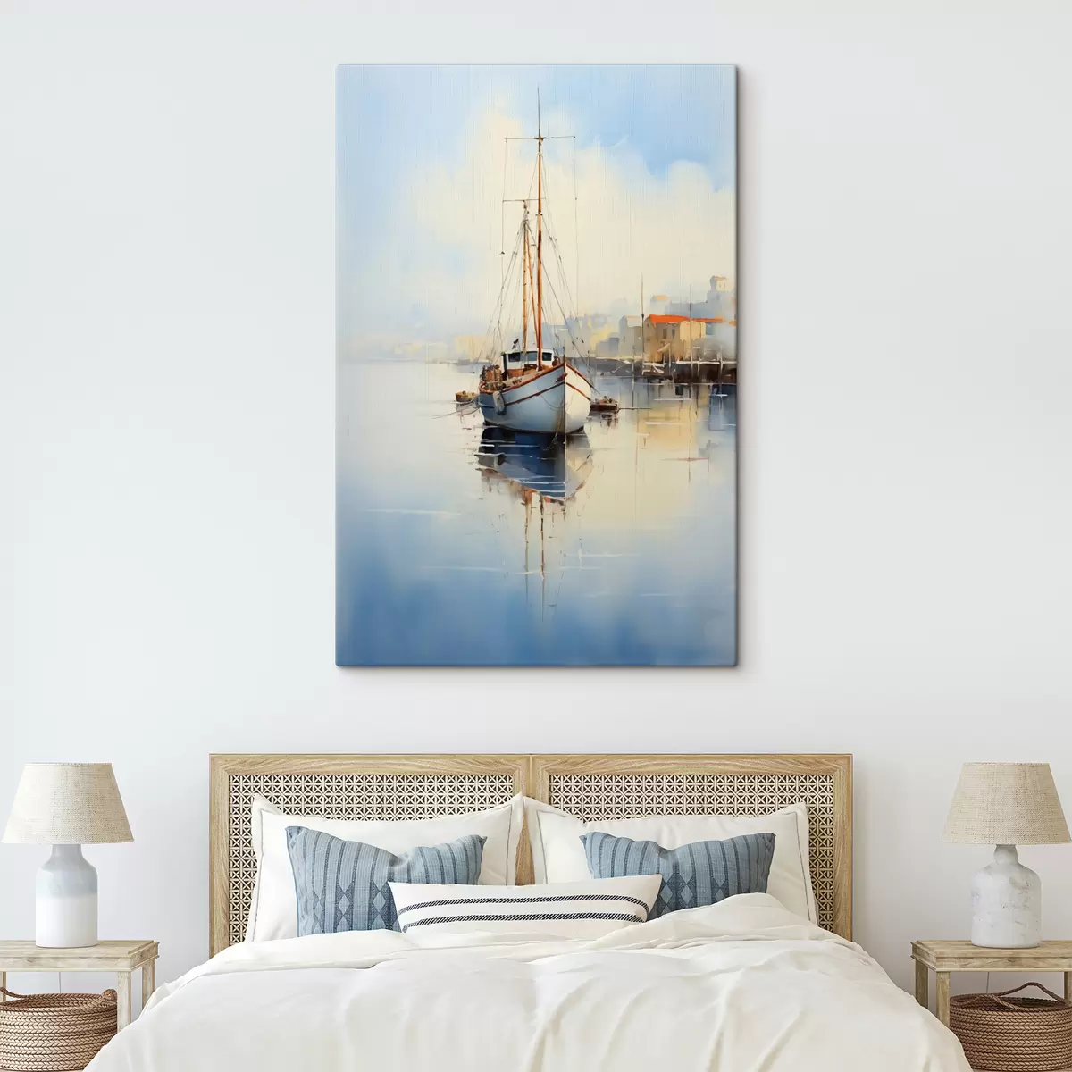 Wandbilder Fischerboot am Pier auf dem Meer nass Aquarell s40688