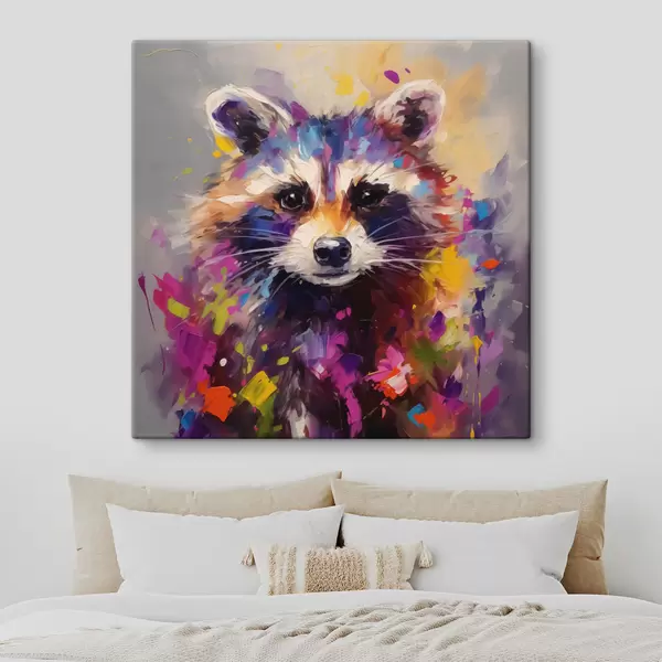 Wandbilder Lebendiger Waschbär mit künstlerischem Flair Art. s40691