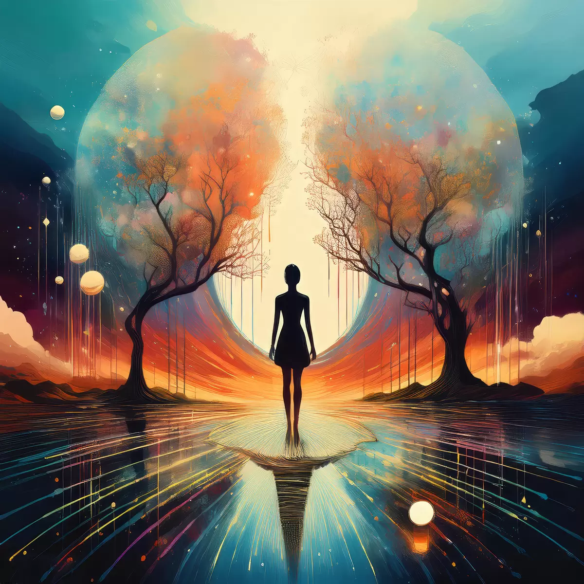 Wandbilder silhouette zwischen Bäumen, Selbsterkenntnis, Selbstreflexion Art. s40713