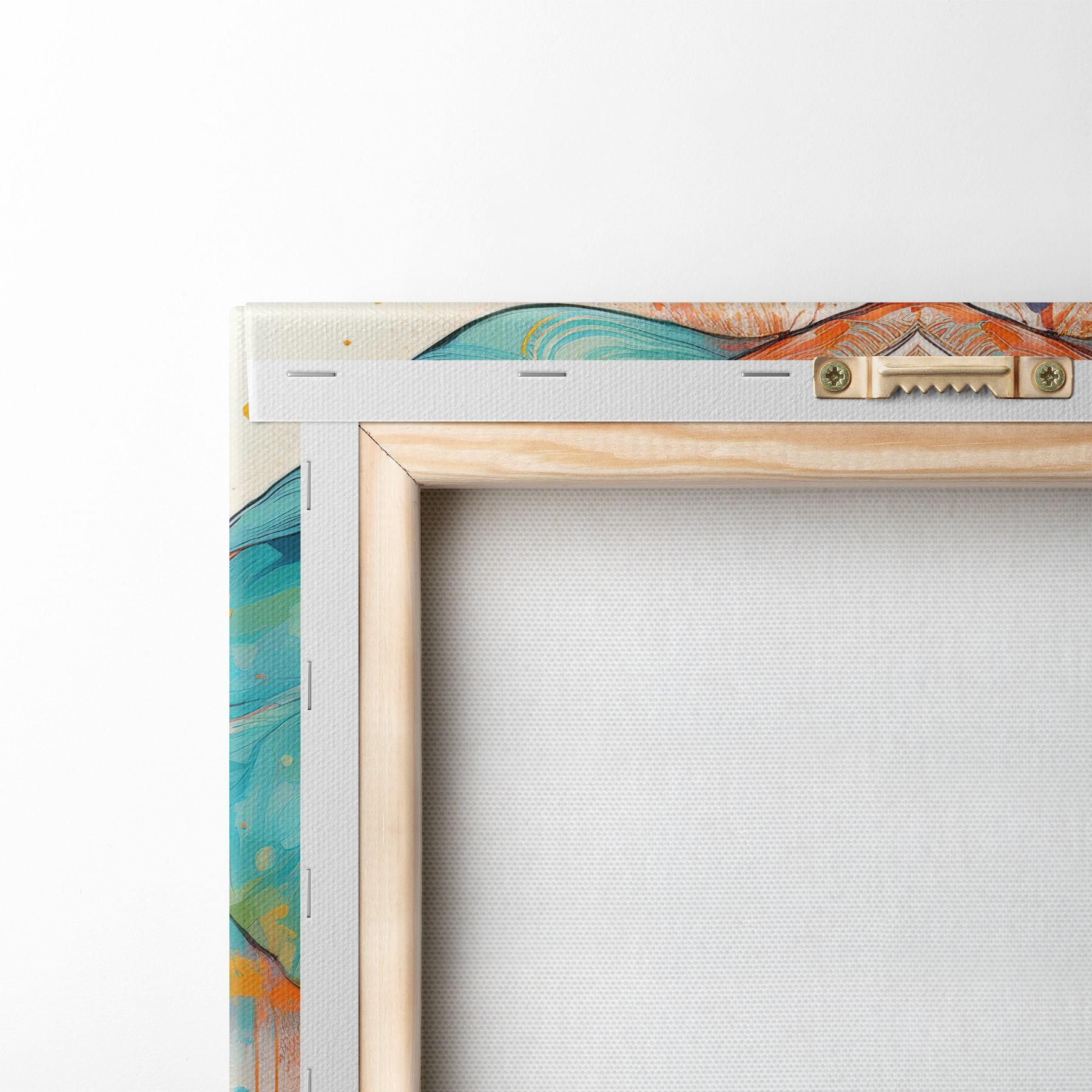 Um die Leinwand auf Keilrahmen zu spannen, ohne das Bild zu beschädigen, verwenden wir ein gespiegeltes Bild.